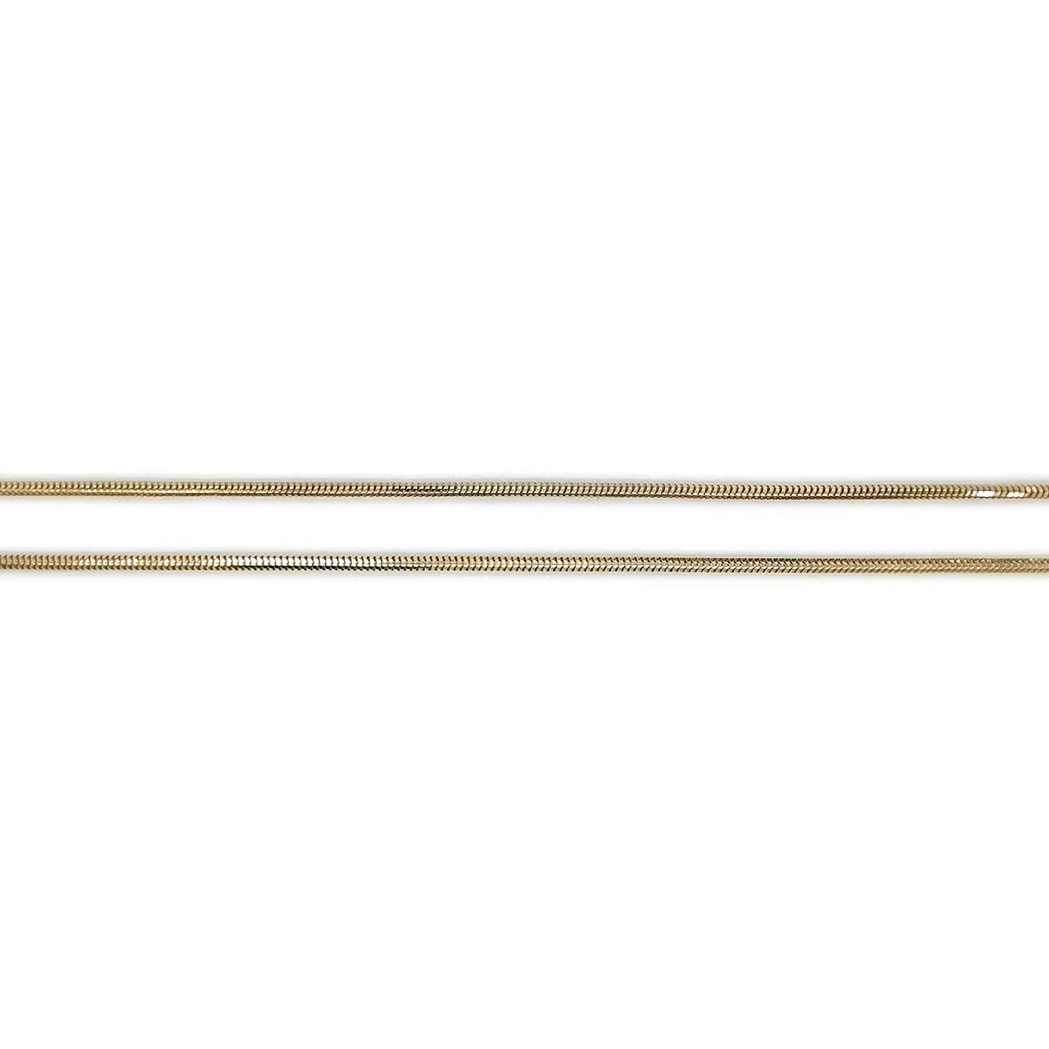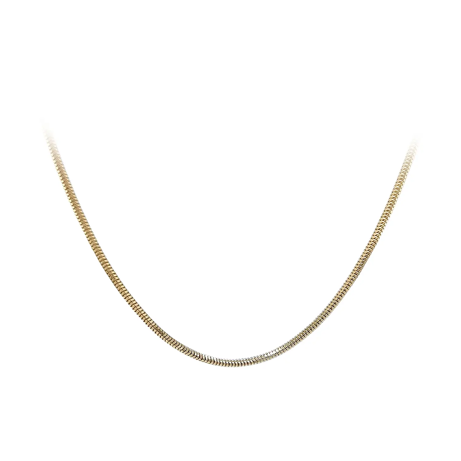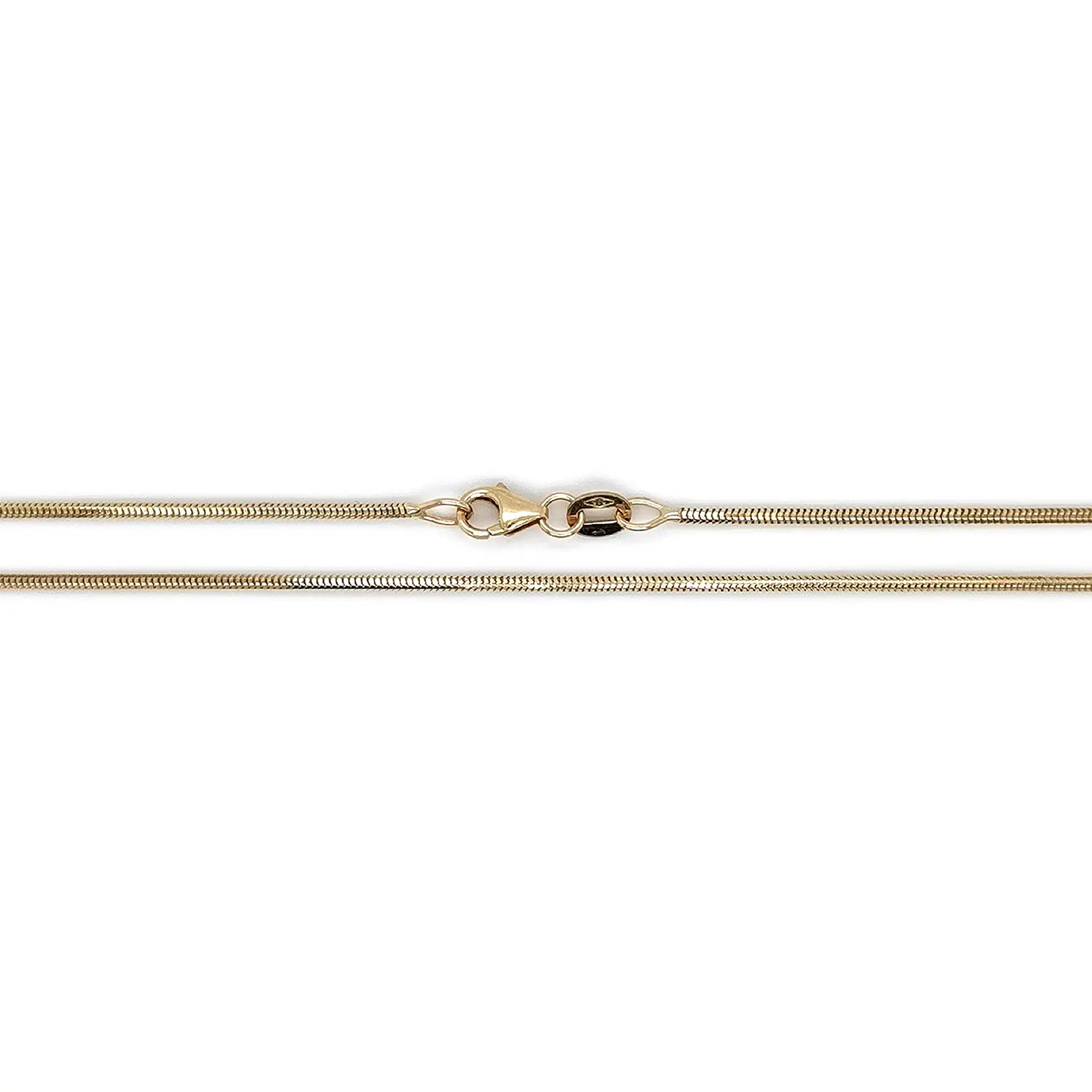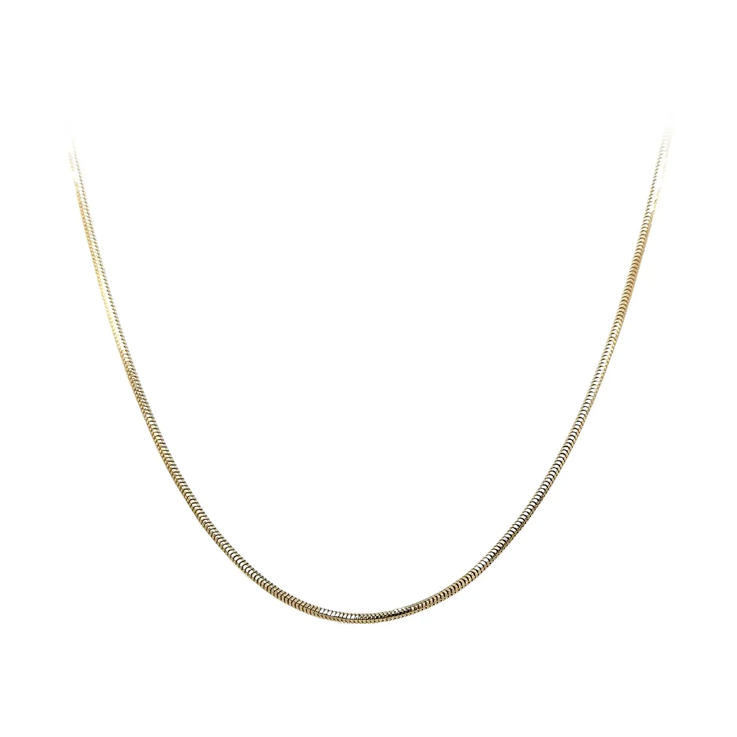 Золотая змеевидная цепочка покоряет своей гладкой, непрерывной структурой, которая элегантно повторяет линию шеи и создаёт утончённое, роскошное сияние. Благодаря характерному «змеиному» плетению она невероятно мягкая и комфортная в носке, а её минималистичный дизайн подчёркивает современную элегантность. Ширина 1,20 мм делает украшение изящным, сохраняя его визуальную выразительность.