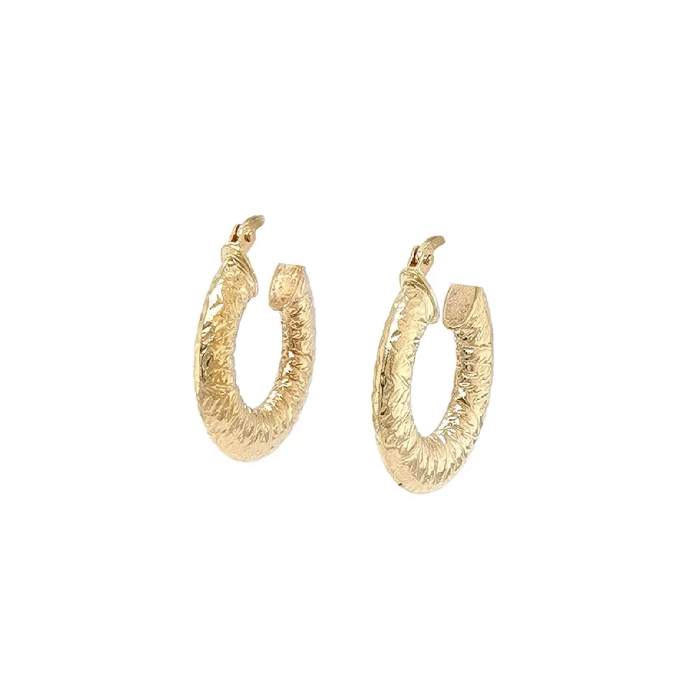 Золотые кольцевые серьги с гравированным узором