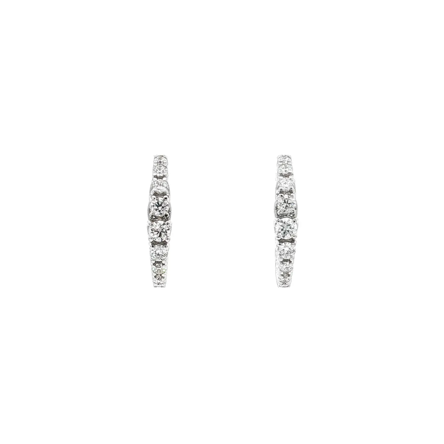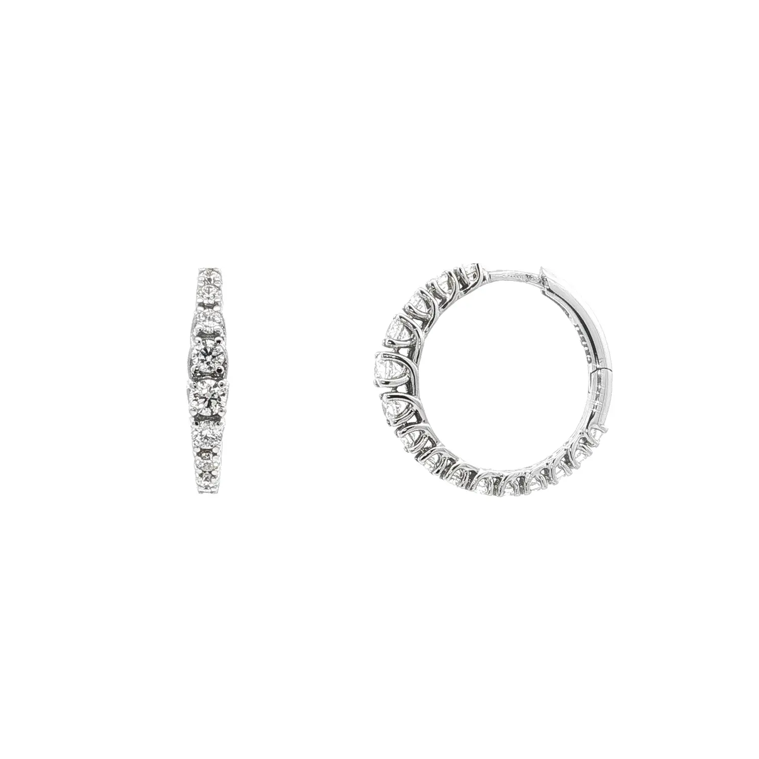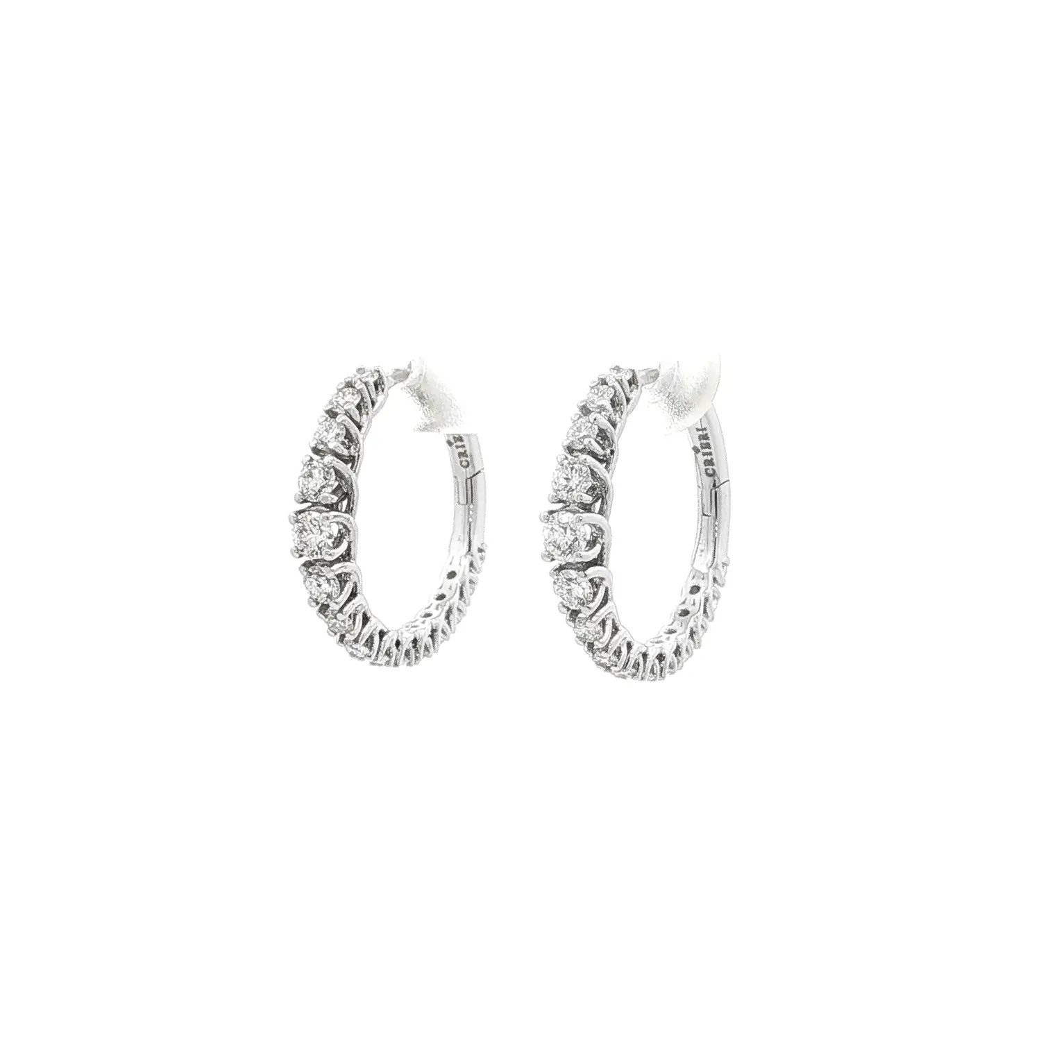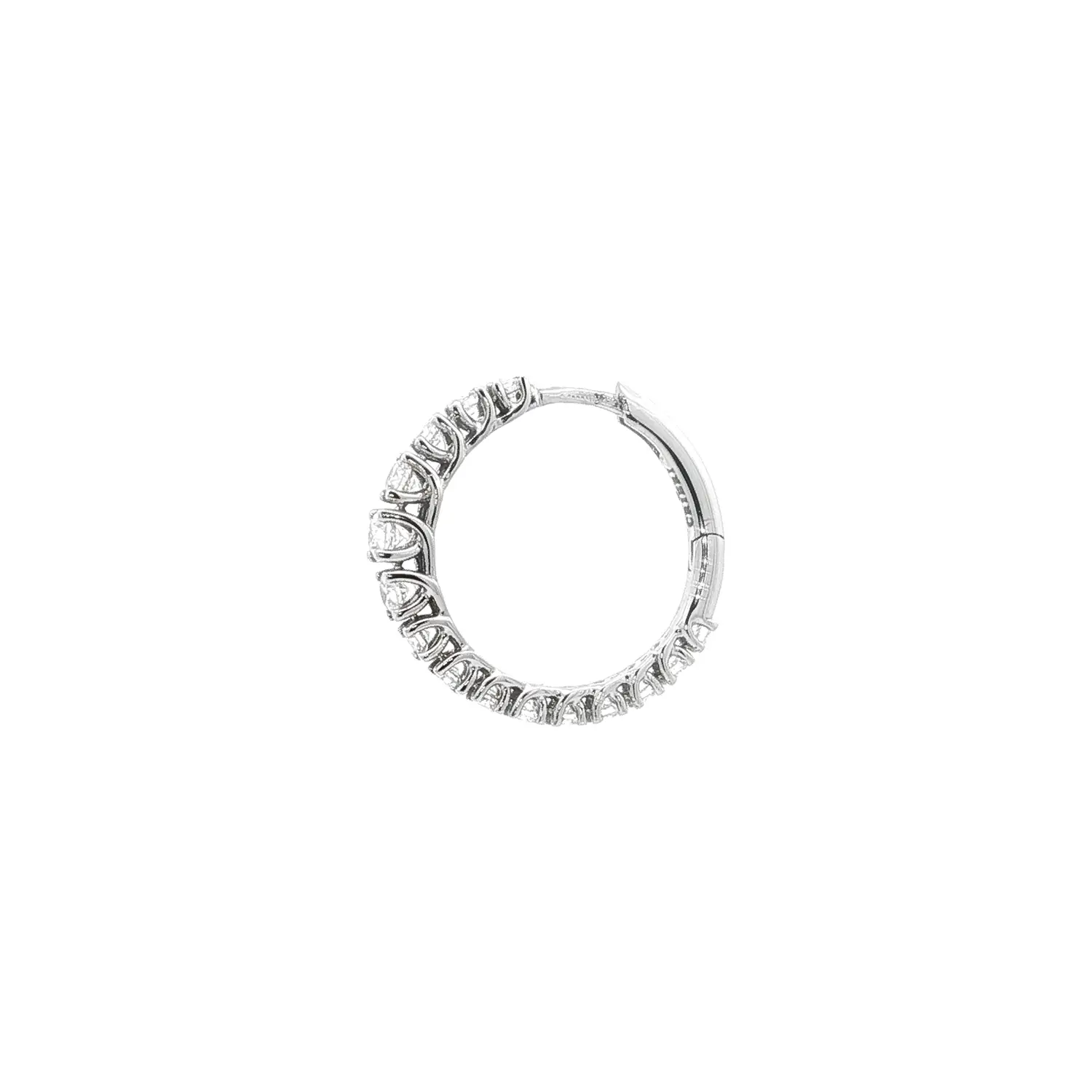 Украшены 30 натуральными белыми бриллиантами круглой огранки (Round) общей массой 1,05 карата, цвета G–H, чистоты VS. Каждый камень аккуратно вручную закреплён, образуя непрерывную линию сияния по кругу серьги и создавая эффект лёгкого блеска при движении.