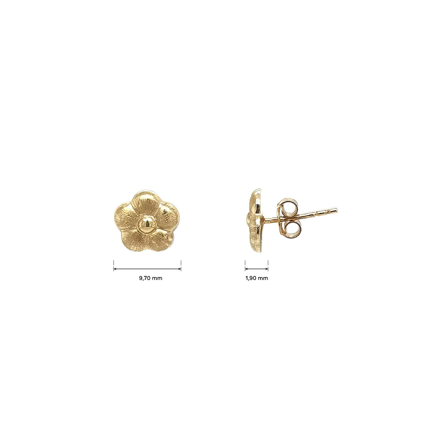 Эти изящные золотые серьги-гвоздики в форме цветочков сочетают элегантность и легкую игривость благодаря матовой поверхности, подчеркивающей текстуру лепестков. Полированный центр создаёт мягкий контраст и добавляет естественное сияние. Небольшой размер делает серьги подходящими как для детей, так и для взрослых.