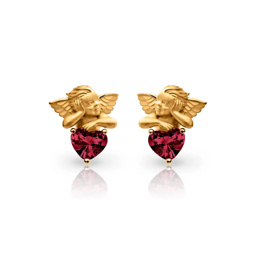 Главными драгоценными камнями являются 2 природных красных граната в форме сердца (Heart), которые придают украшению теплый эмоциональный акцент. Каждый гранат контрастирует с золотом и усиливает замысел дизайна коллекции My Angel.