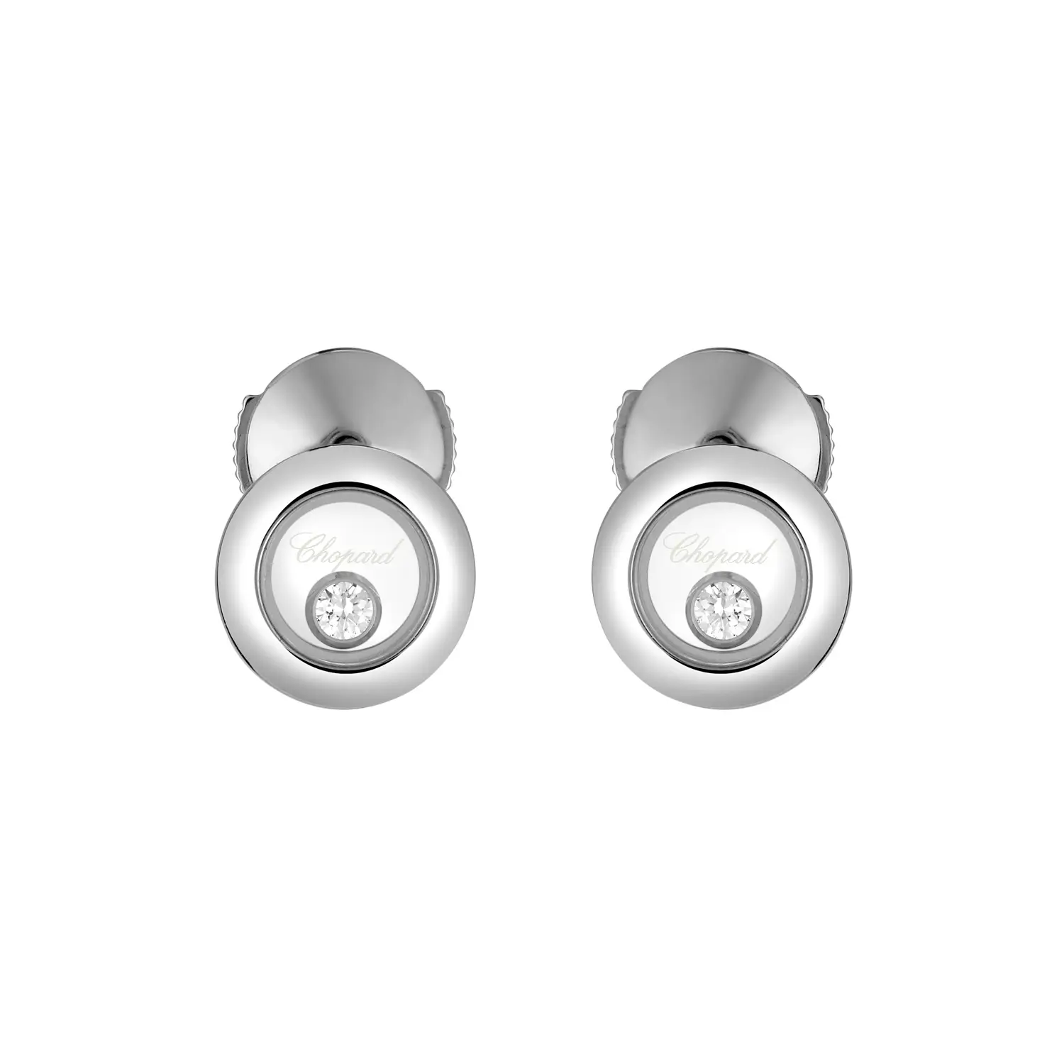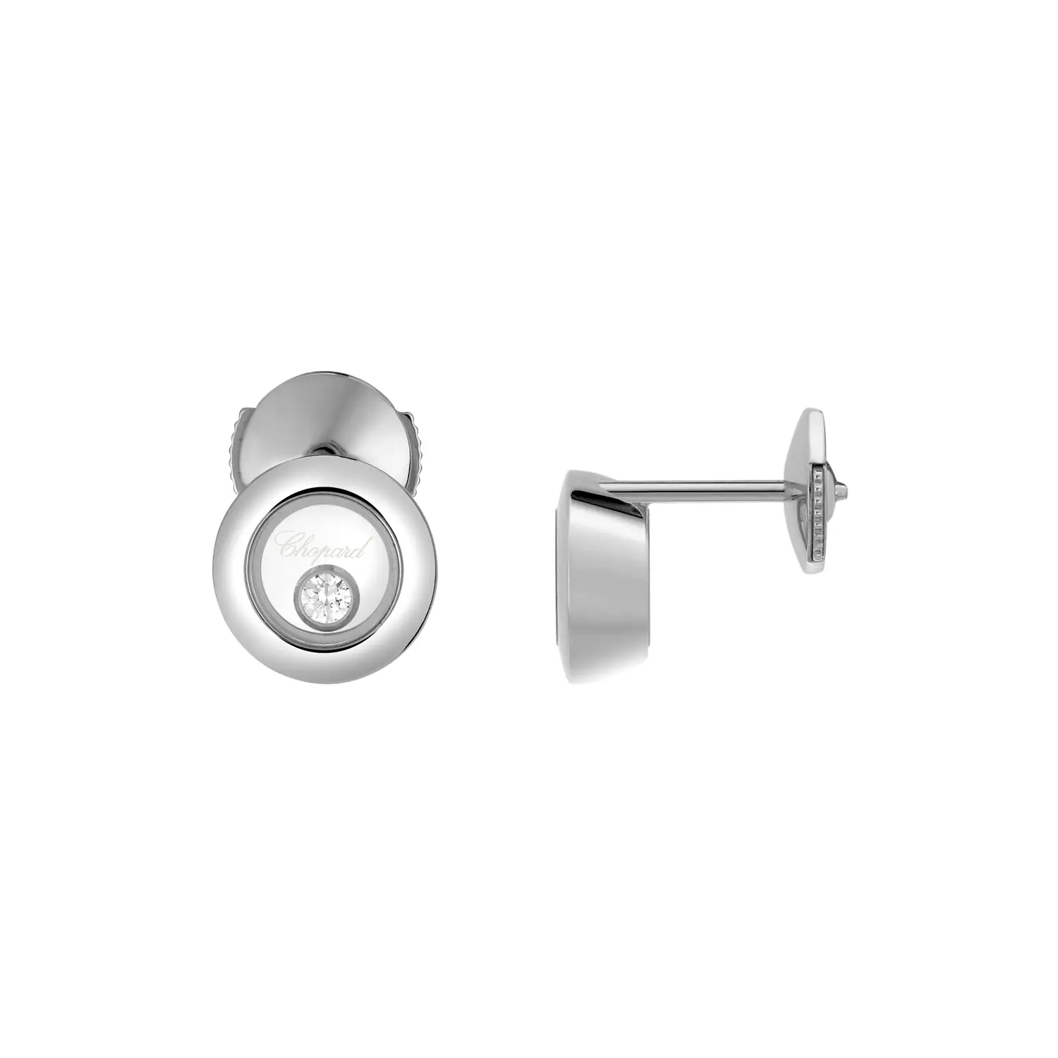 Chopard Happy Diamonds 83A017-1001 — эlegантные серьги-пусеты, сочетающие игривость культовой коллекции с вне́временной чистотой линий. Изготовлены из белого золота 18 карат (750/1000) с полированной поверхностью; универсальны и утончённы, легко сочетаются с другими украшениями Chopard — от повседневных образов до торжественных.