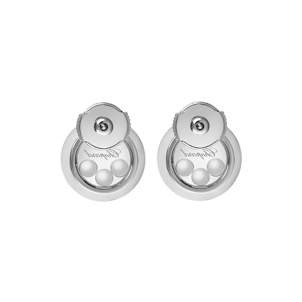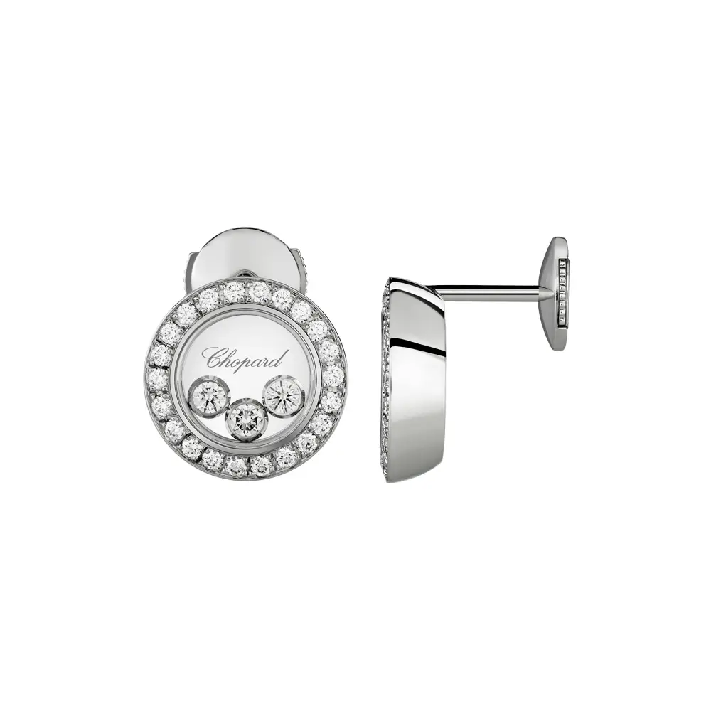 Chopard Happy Diamonds 83A018-1201 — элегантные серьги-пусеты, сочетающие игривость культовой коллекции с вне́временной чистотой линий. Выполнены из белого золота 18 карат (750/1000) с полированной поверхностью; минималистичная форма выглядит деликатно и универсально. Застёжка-пусета (butterfly) обеспечивает надёжное и комфортное ношение с утра до вечера; серьги легко сочетаются с другими украшениями Chopard.
