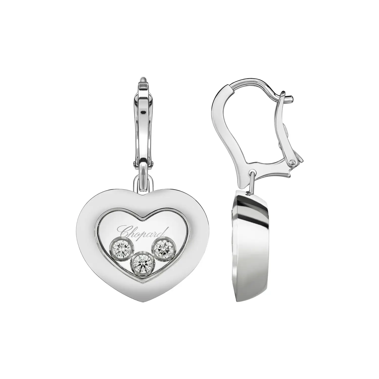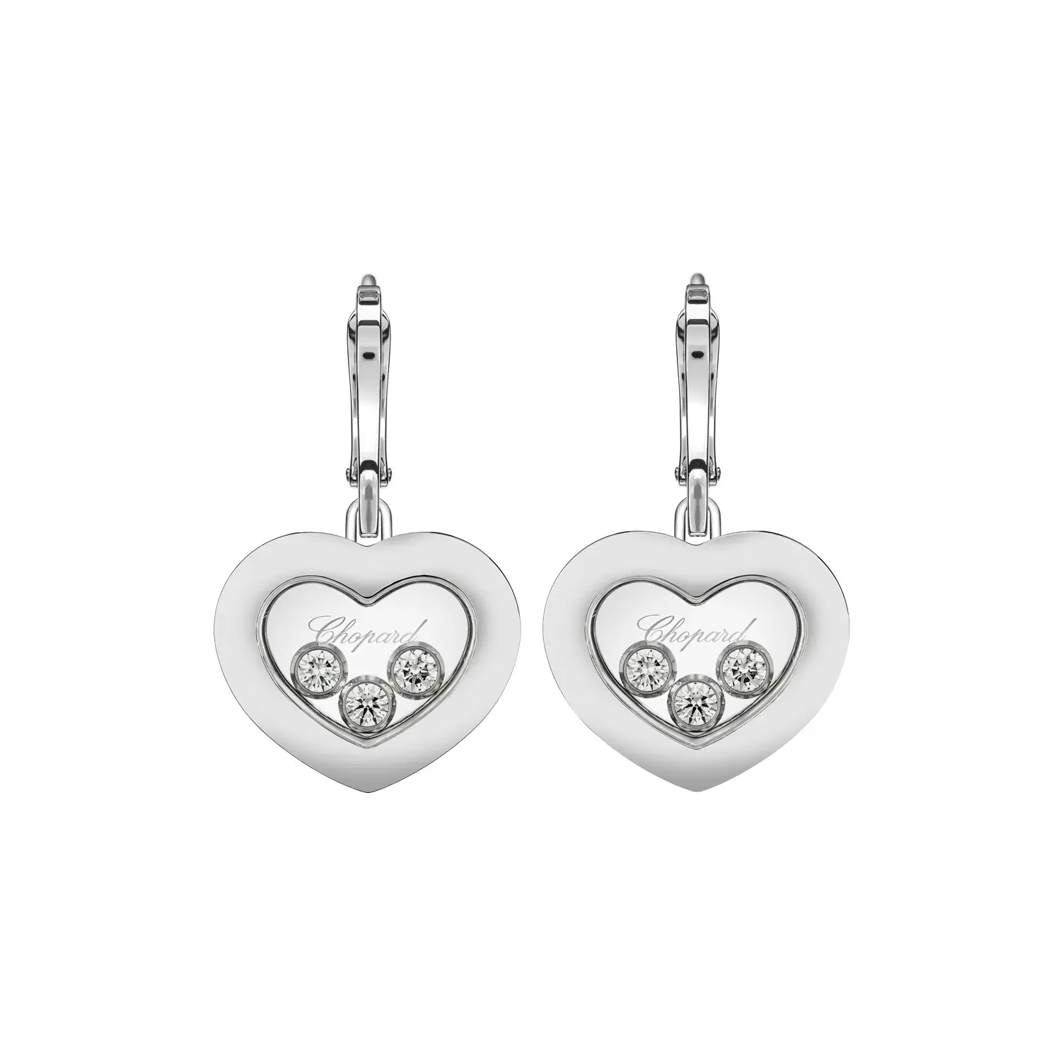 Серьги Chopard Happy Diamonds Icons 83A611-1301 излучают чистоту, свет и изысканную элегантность. Изготовлены из 18-каратного белого золота, украшены свободно движущимися бриллиантами общим весом около 0,30 ct, которые изящно вращаются между двумя сапфировыми стёклами — фирменный элемент коллекции Happy Diamonds, символ радости, свободы и женственности.