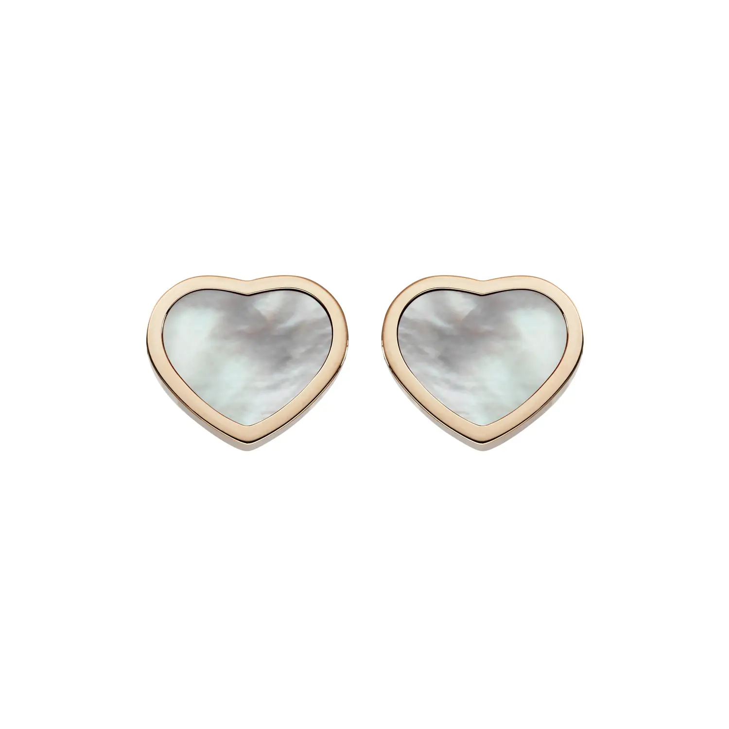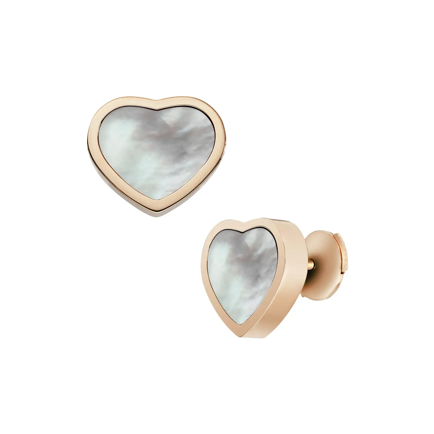 Серьги Chopard Happy Hearts 839482-5301 объединяют романтичный дизайн и утончённую роскошь. Изготовлены из 18-каратного розового золота, украшены двумя сердцами из белого перламутра, которые мягко переливаются, символизируя чистоту и женственность — фирменный мотив коллекции Happy Hearts. Каждый элемент отражает радость и элегантность, присущие дому Chopard.