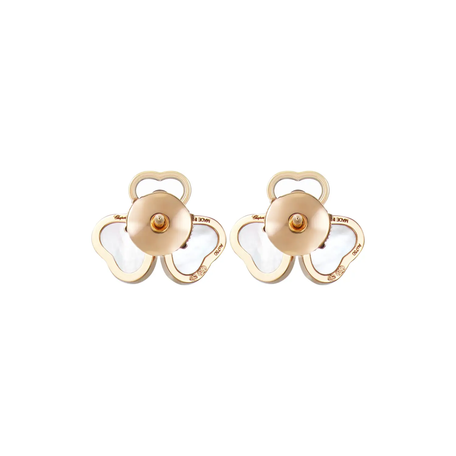 Серьги Chopard Happy Hearts Wings 83A083-5301 воплощают лёгкость, свободу и женственную утончённость. Изготовлены из 18-каратного розового золота, украшены бриллиантами общим весом около 0,10 ct и белыми перламутровыми сердцами, образующими форму крыльев бабочки — символа радости и свободы.