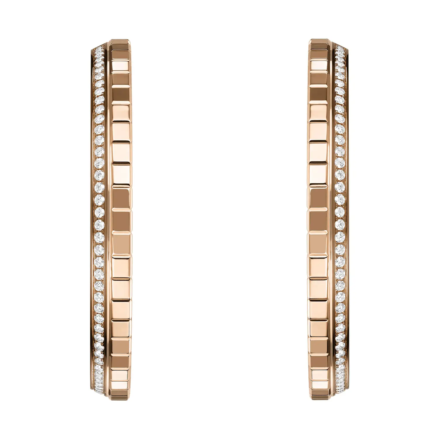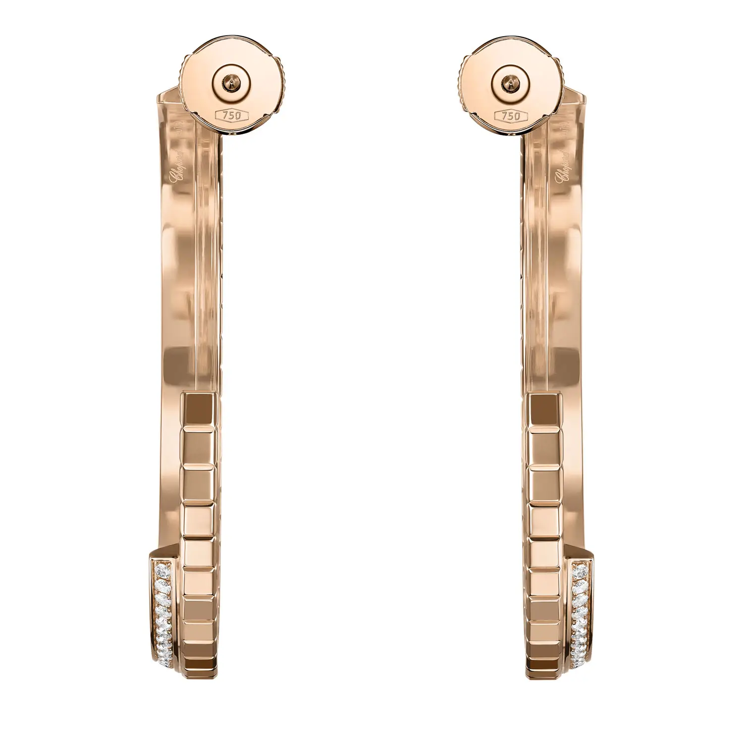 Серьги Chopard Ice Cube 837008-5002 представляют современное воплощение культовой коллекции Ice Cube, вдохновлённой чистотой геометрии и блеском льда. Изготовлены из этичного розового золота 18 карат, украшены белыми бриллиантами общим весом около 0,71 карата, каждая грань которых отражает свет с изысканным сиянием.