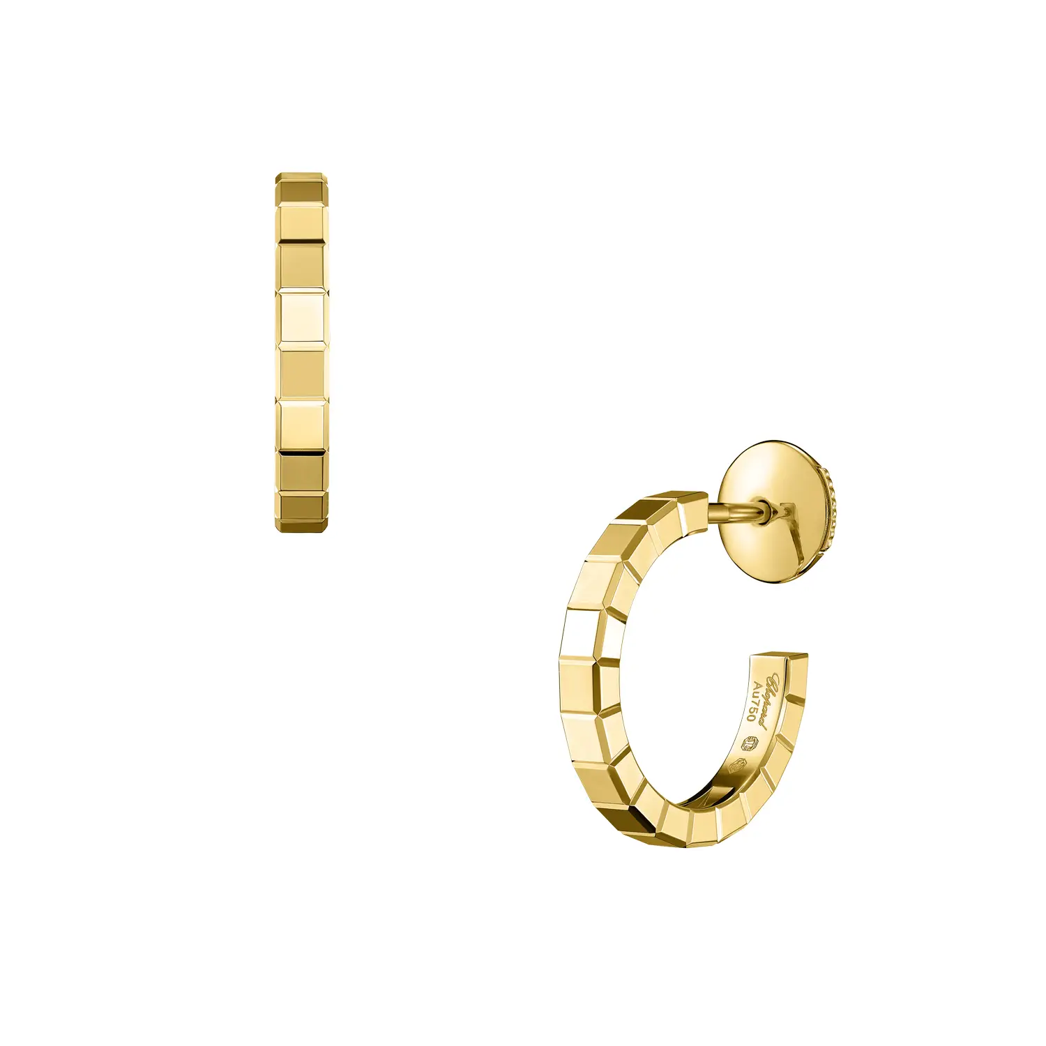Серьги Chopard Ice Cube из 18-каратного этичного жёлтого золота воплощают минималистичную элегантность и современную роскошь. Их культовый дизайн, вдохновлённый формой куба, создаёт завораживающую игру света и бликов, а идеально отполированные поверхности отражают сияние с исключительной чистотой. Каждый элемент демонстрирует безупречное мастерство, ставшее визитной карточкой Chopard.