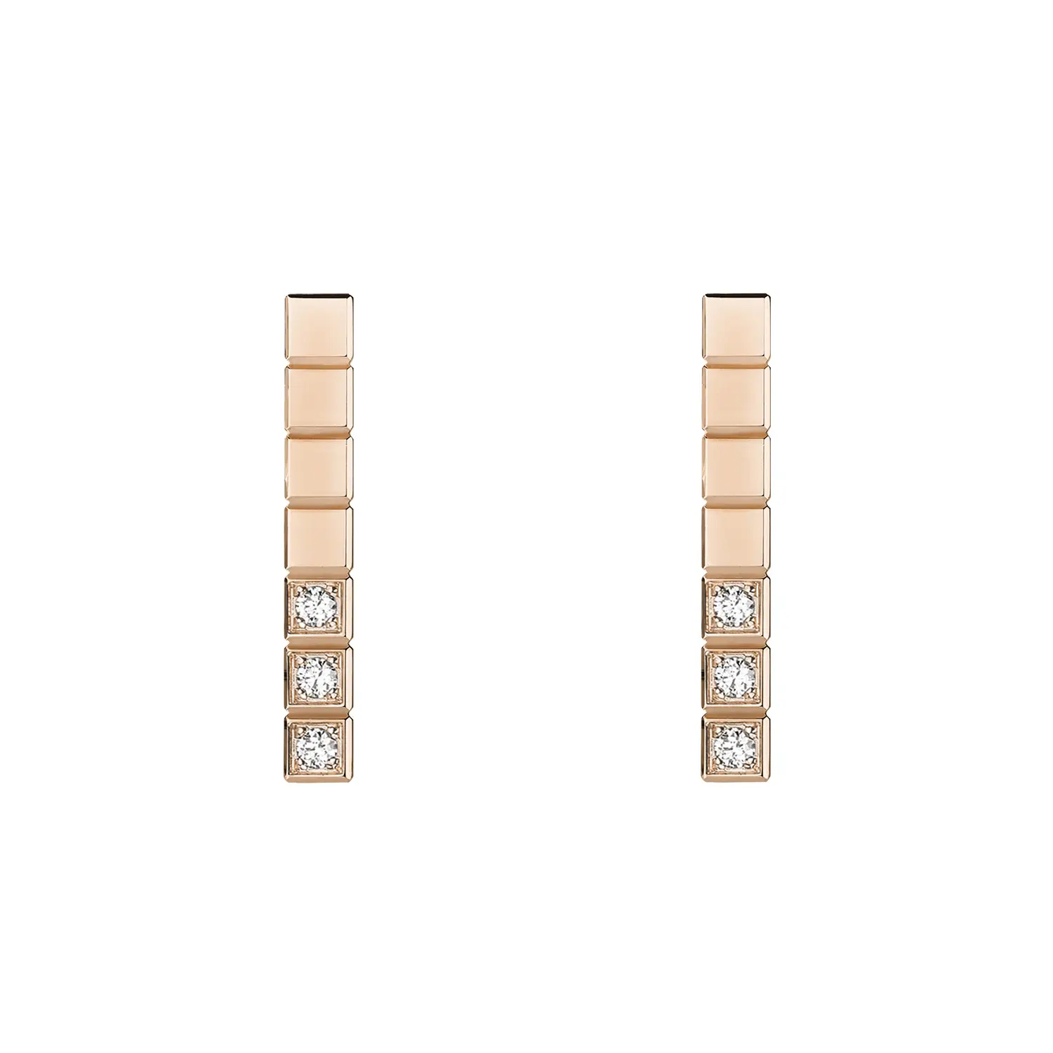 Серьги Chopard Ice Cube 837702-5002 воплощают современный минимализм и изысканную роскошь. Изготовленные из 18-каратного розового золота и украшенные шестью бриллиантами общим весом 0,06 ct, они отражают фирменный геометрический стиль коллекции Ice Cube, вдохновлённый формой ледяных кубиков.