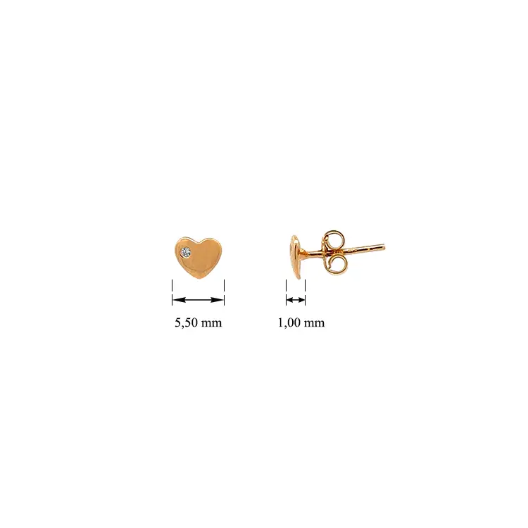 Золотые серьги-гвоздики Сердечки