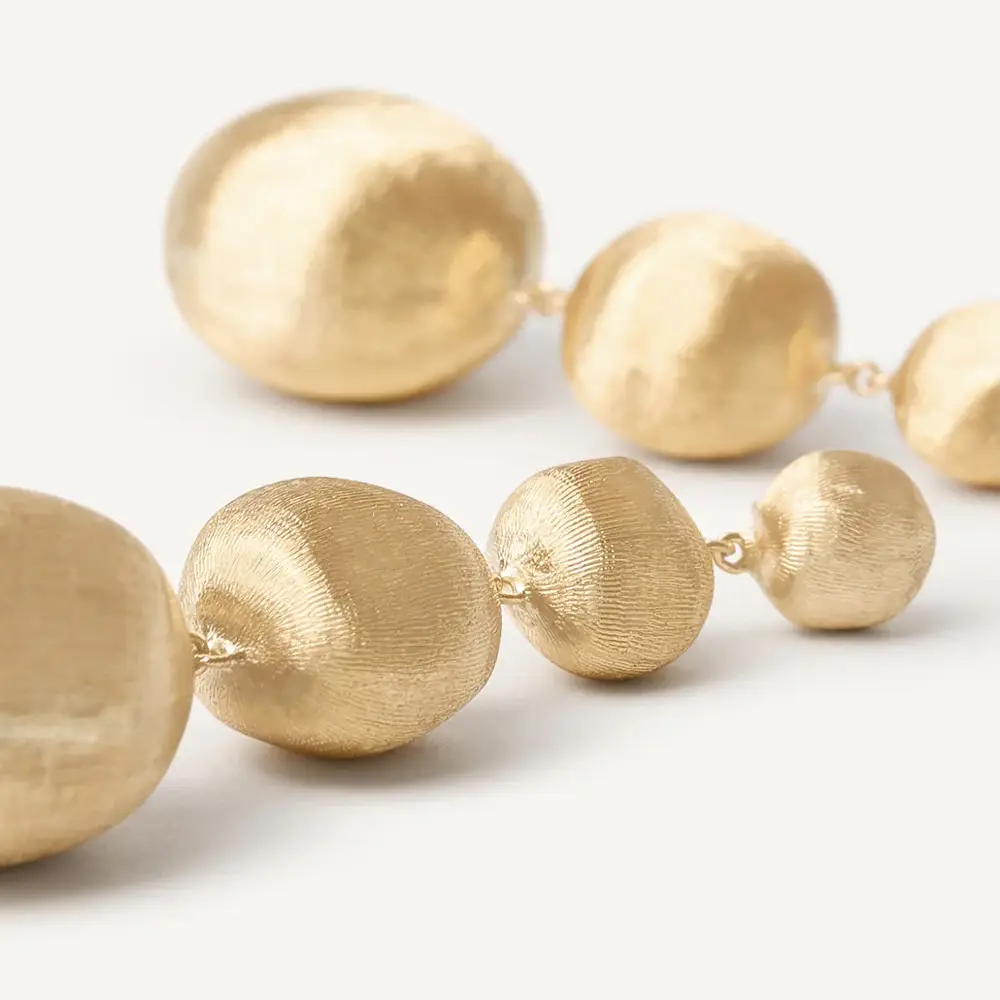 Эти серьги из коллекции Marco Bicego Africa соединяют в себе ювелирное мастерство и современный дизайн — они станут идеальным выбором для женщины, которая ценит украшения с характером, оставаясь элегантной и утончённой. Форма и матовая отделка придают серьгам мягкую, неброскую элегантность и лёгкость, напоминая о природной красоте и экзотических местах.