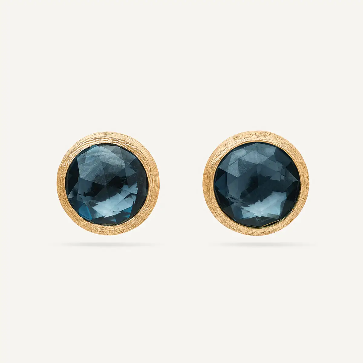 Серьги Marco Bicego Jaipur OB957 TPL01 Y-02 воплощают утончённую простоту, присущую линии Jaipur, с акцентом на выразительный драгоценный камень. Они выполнены из жёлтого золота 18 kt (750/1000) с матовой отделкой, которая подчёркивает ручную фактуру металла. Крепление — пуссета (гвоздик) — обеспечивает элегантное и незаметное ношение.