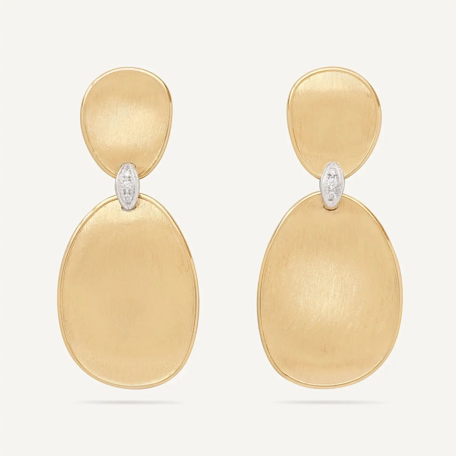 Роскошные золотые серьги Marco Bicego Lunaria Diamonds OB1460_B YW Q6 изготовлены из 18-каратного жёлтого золота (750/1000) и отражают культовый дизайн коллекции Lunaria. Отличительной особенностью является ручная гравировка по золоту, выполненная по традиционной флорентийской технике, создающая шелковисто-матовую поверхность и природные формы.