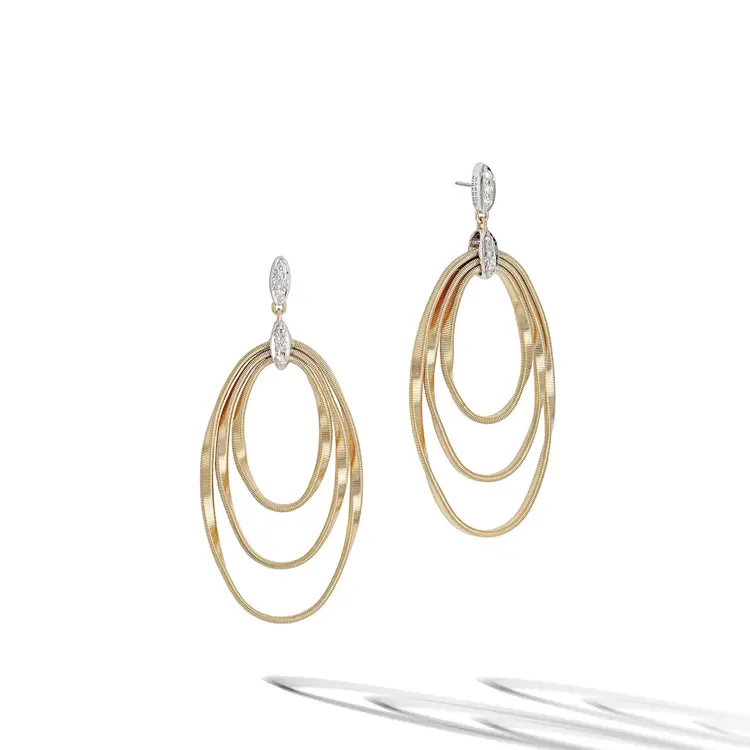 Каждое изделие выполнено из золота 750-й пробы и украшено фирменной техникой ручного скручивания проволоки, которая является визитной карточкой Marco Bicego. Этот приём придаёт украшениям подвижность, текстуру и глубину, благодаря чему они выглядят живыми и неповторимыми. Marrakech включает ожерелья, браслеты, серьги и кольца, нередко дополненные бриллиантами для ещё большего сияния.