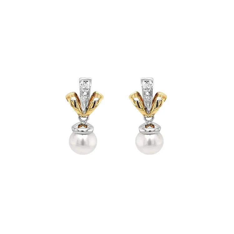 Золотые серьги Натуральный жемчуг и бриллианты