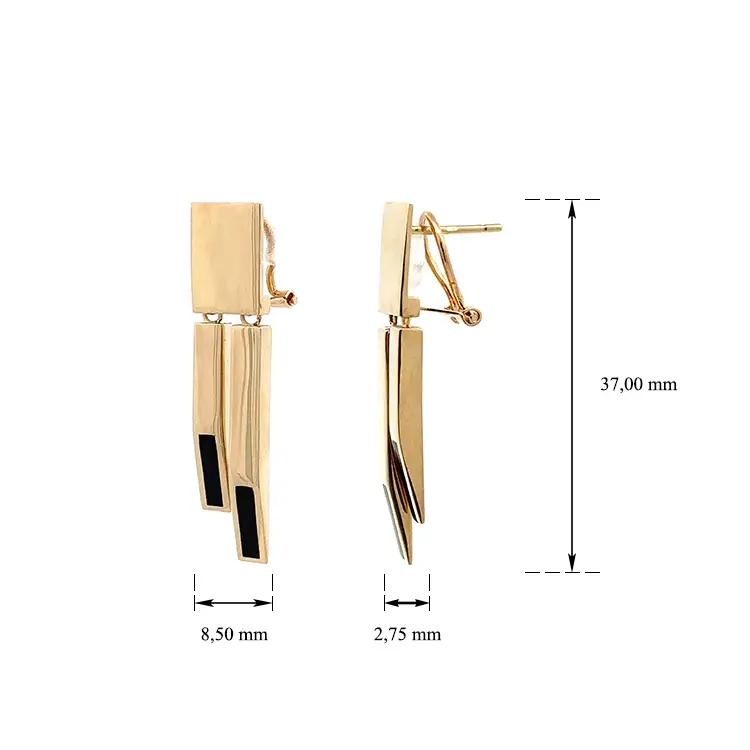 Золотые серьги-подвески с эмалью