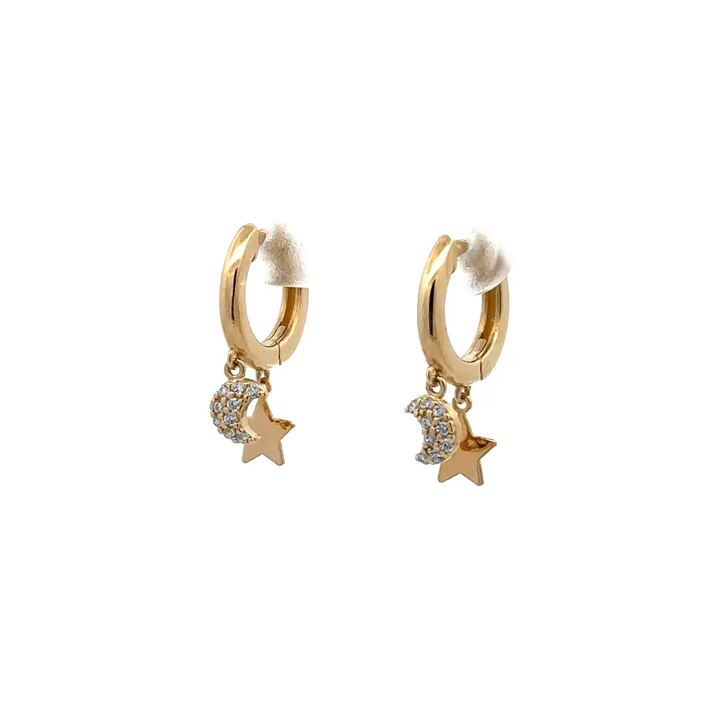 Золотые серьги "Полумесяц и звезда" с цирконами