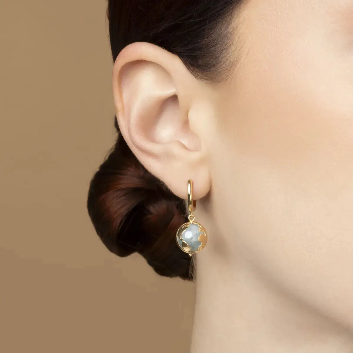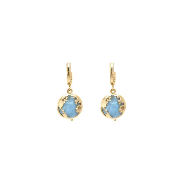 Золотые серьги-пусеты с аквамарином