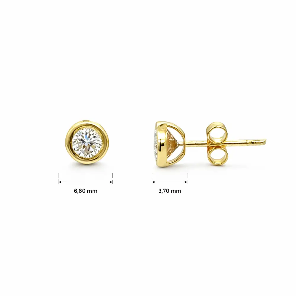 Эти золотые серьги-пусеты с прозрачным цирконом — воплощение утончённой элегантности и вневременного дизайна. Аккуратно закреплённый циркон красиво отражает свет, придавая украшению мягкое сияние, подходящее как для повседневного образа, так и для особых случаев.