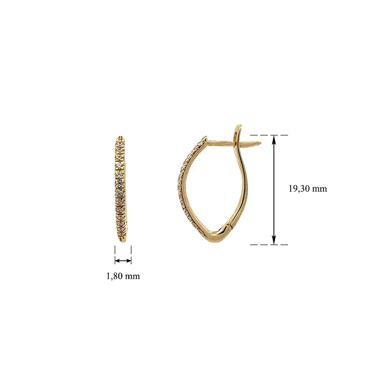 Золотые серьги с цирконами полукругом