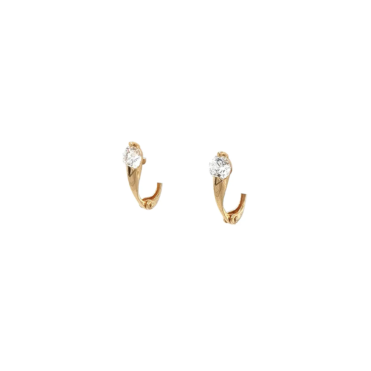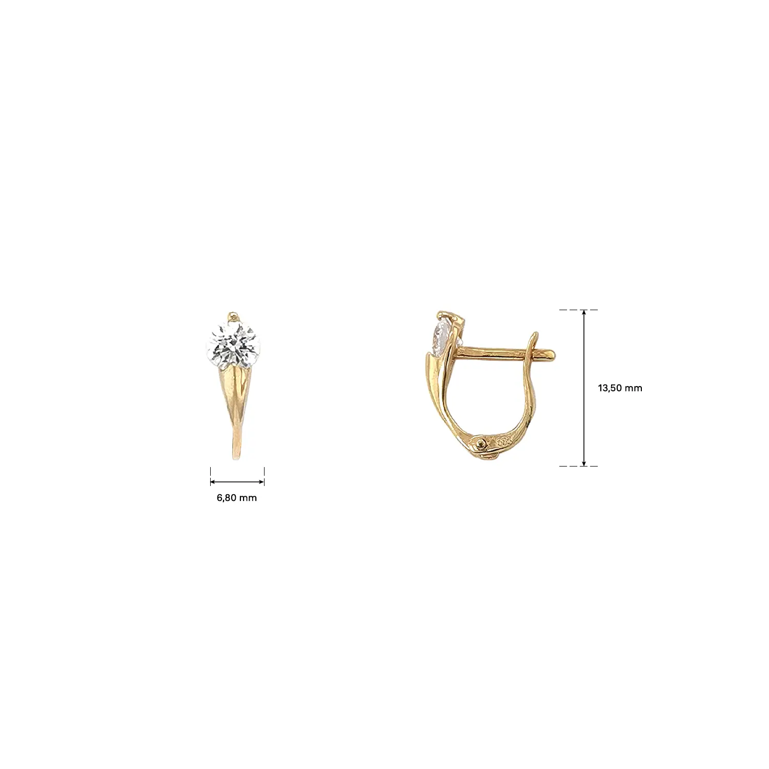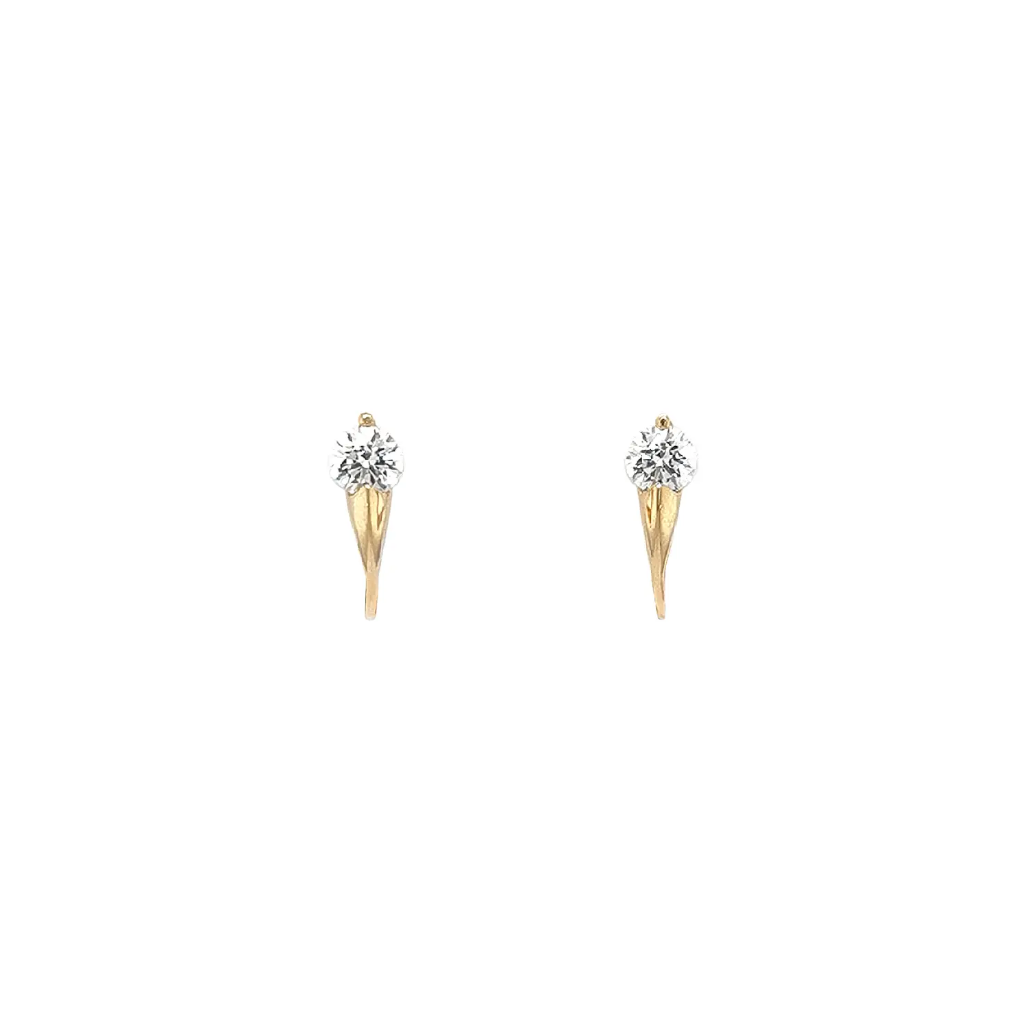 Эти изящные золотые серьги привлекают внимание оригинальной органичной формой, которая мягко обрамляет сверкающий цирконий. Камень закреплён так, чтобы подчеркнуть его сияние, а плавные золотые линии выглядят лёгкими, естественными и женственными. Украшение, сочетающее чистоту минимализма с художественной, необычной деталью.
