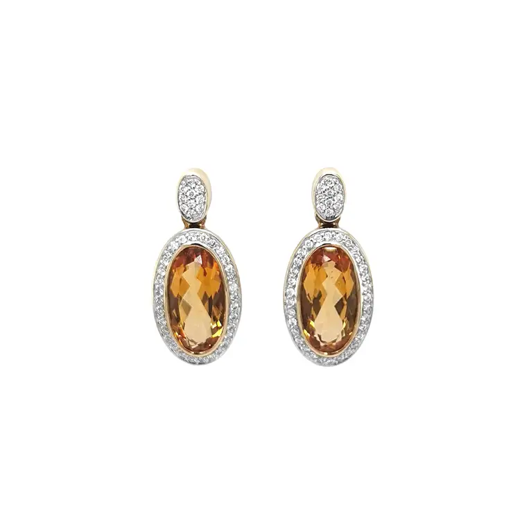 Золотые серьги с цитринами и бриллиантами