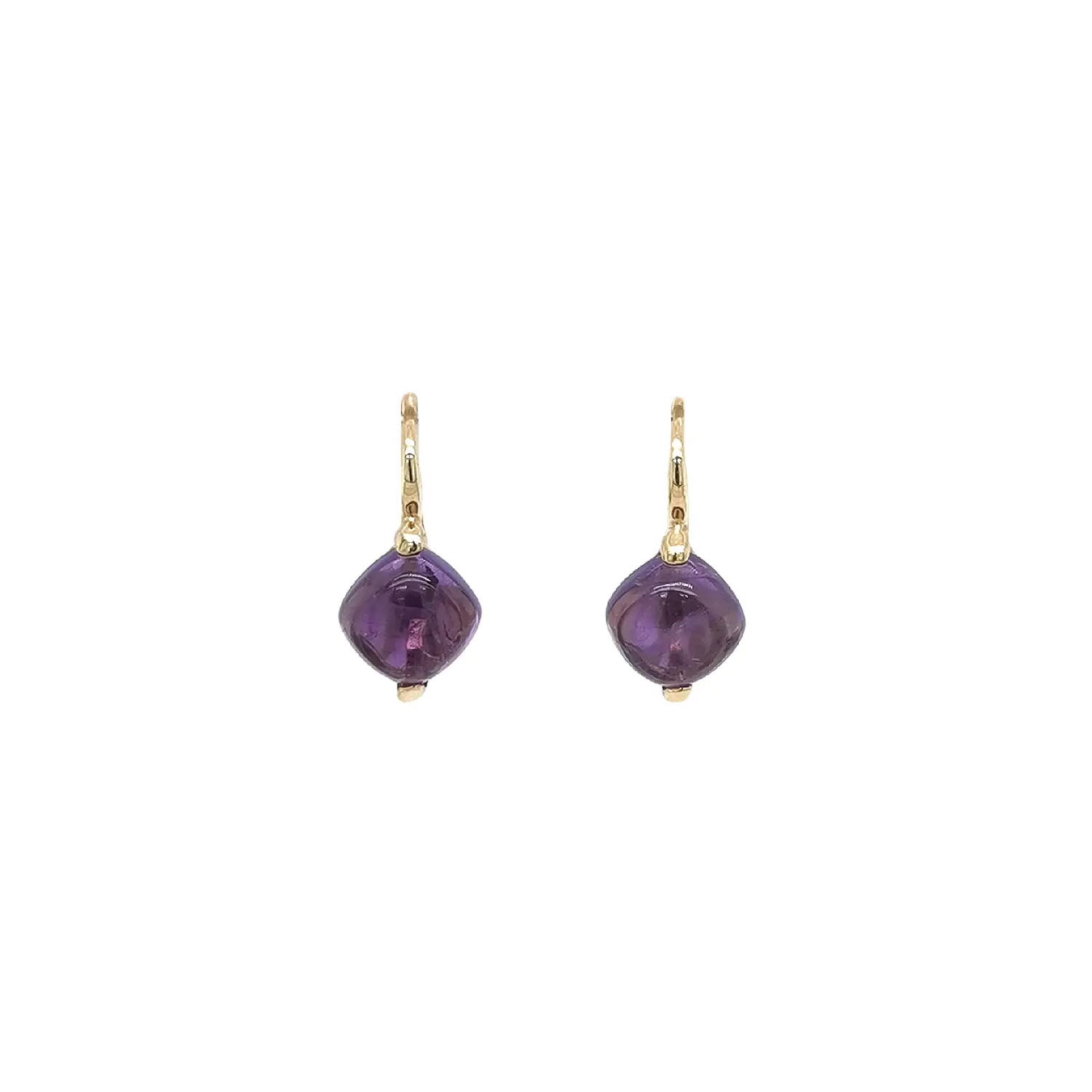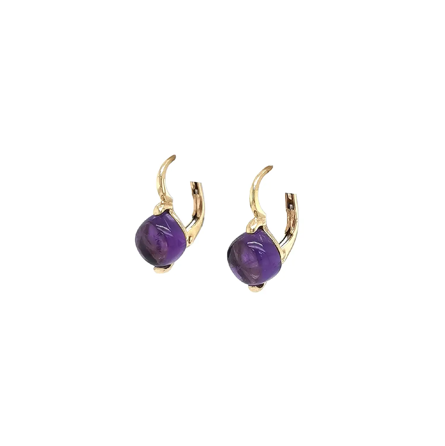 Эти элегантные золотые серьги с гладко отполированными фиолетовыми аметистами очаровывают своей чистой и утончённой эстетикой. Насыщенный фиолетовый оттенок камня прекрасно сочетается с тёплым блеском золота, аккуратно удерживающего его в минималистичной оправе. Удобный английский замок обеспечивает комфортное ношение и надёжную фиксацию.