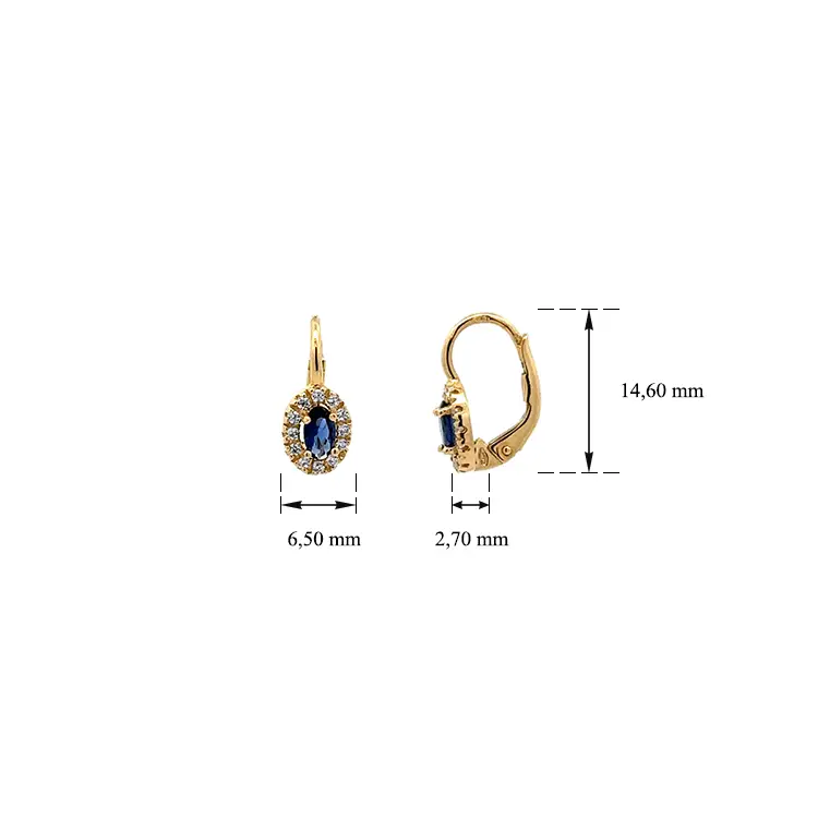 Золотые серьги с голубыми камнями