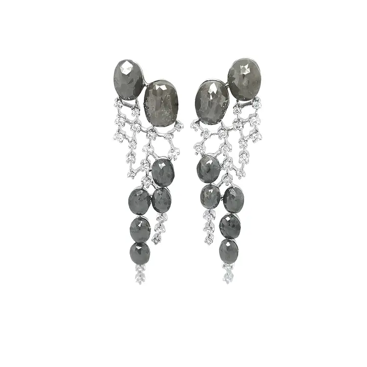 Золотые серьги с серыми и белыми бриллиантами