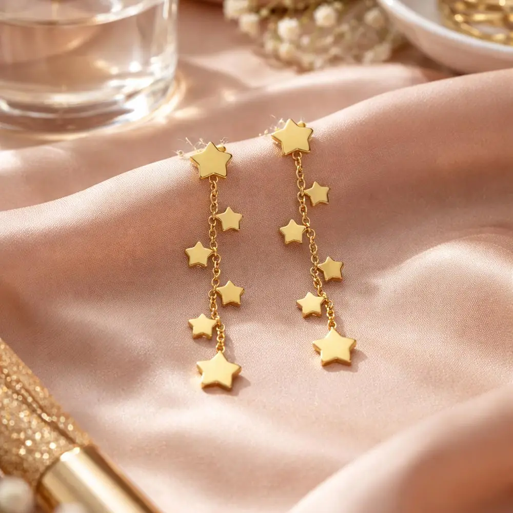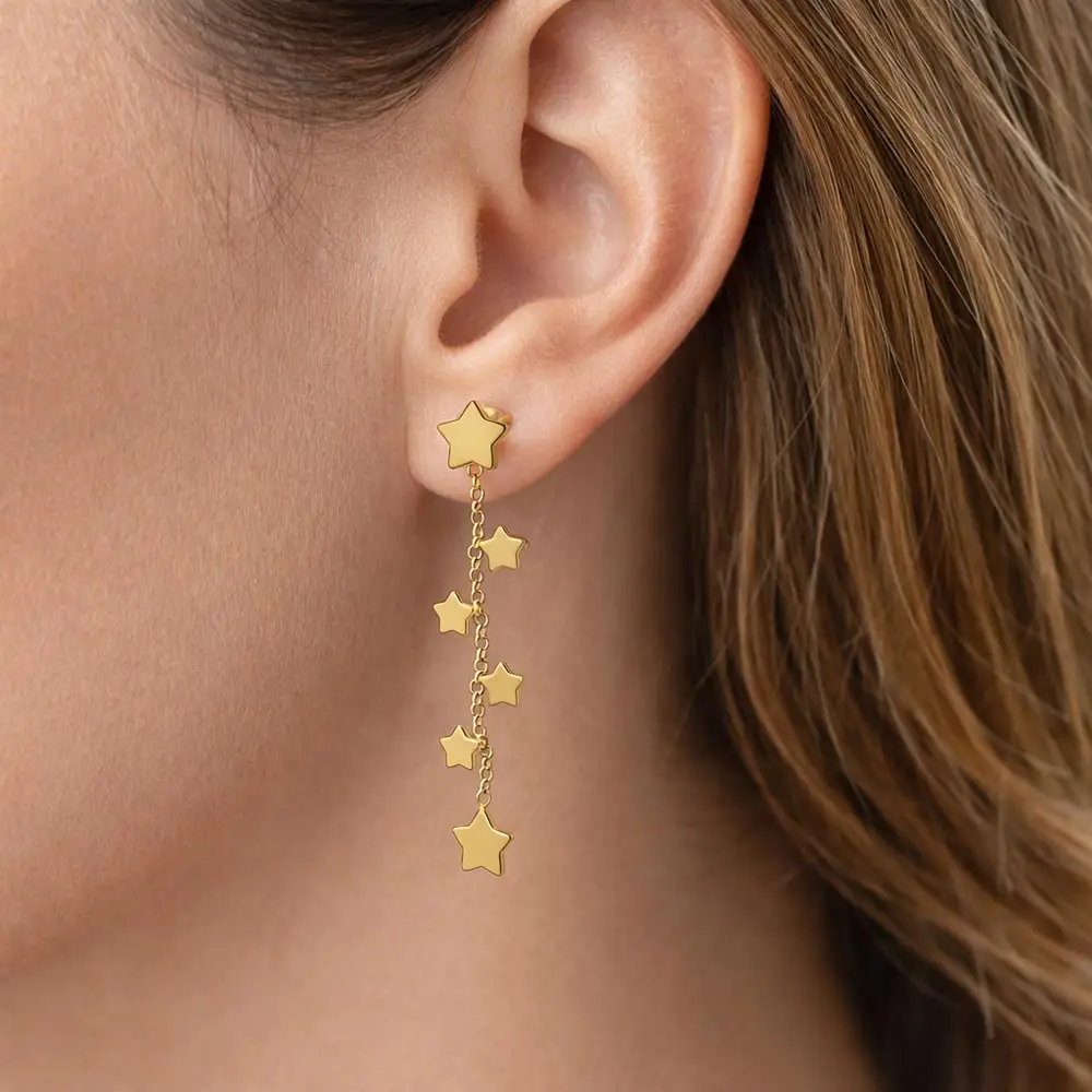 Золотые висячие серьги Звезды