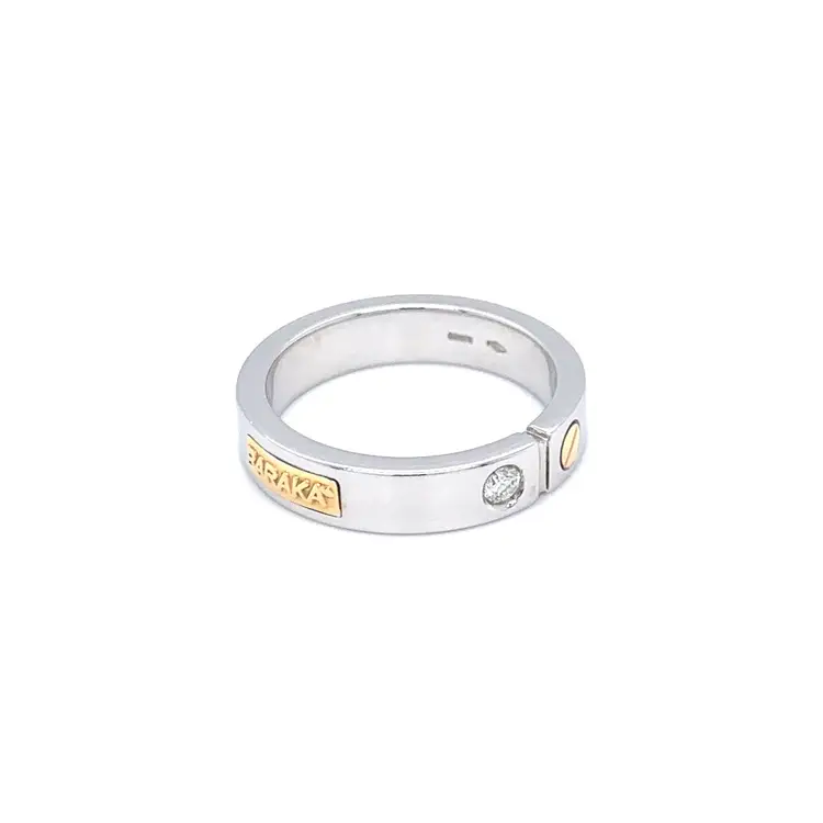 Кольцо Baraka с белым бриллиантом — это утончённый и вечный аксессуар для тех, кто ценит ненавязчивую роскошь. Оно изготовлено из комбинированного золота 18 kt (750/1000) с глянцевой полировкой, что подчёркивает чистоту формы.