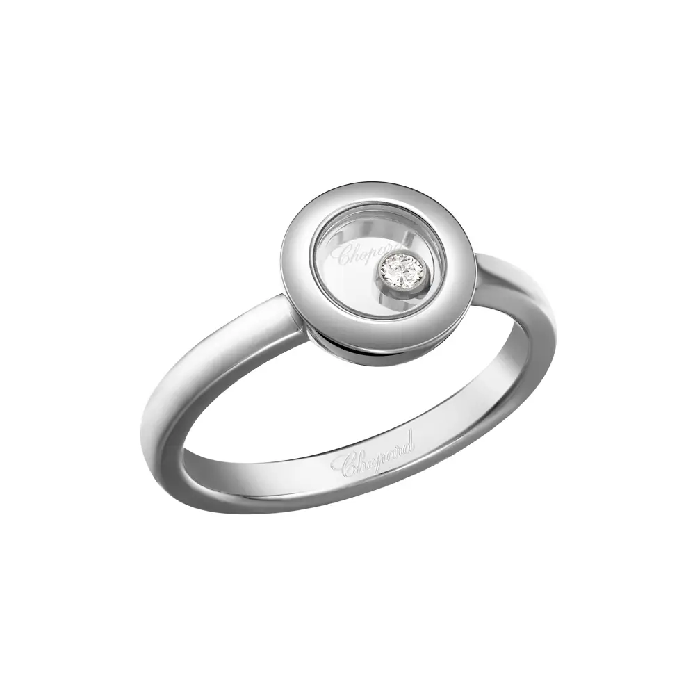 Chopard Happy Diamonds 82A017-1110 — элегантное кольцо, сочетающее утончённость культовой коллекции с вне́временной простотой. Выполнено из белого золота 18 карат (750/1000) с полированной поверхностью, подчёркивающей чистоту линий и универсальную элегантность — идеальный выбор на каждый день и для особых случаев, легко сочетается с другими украшениями Chopard.
