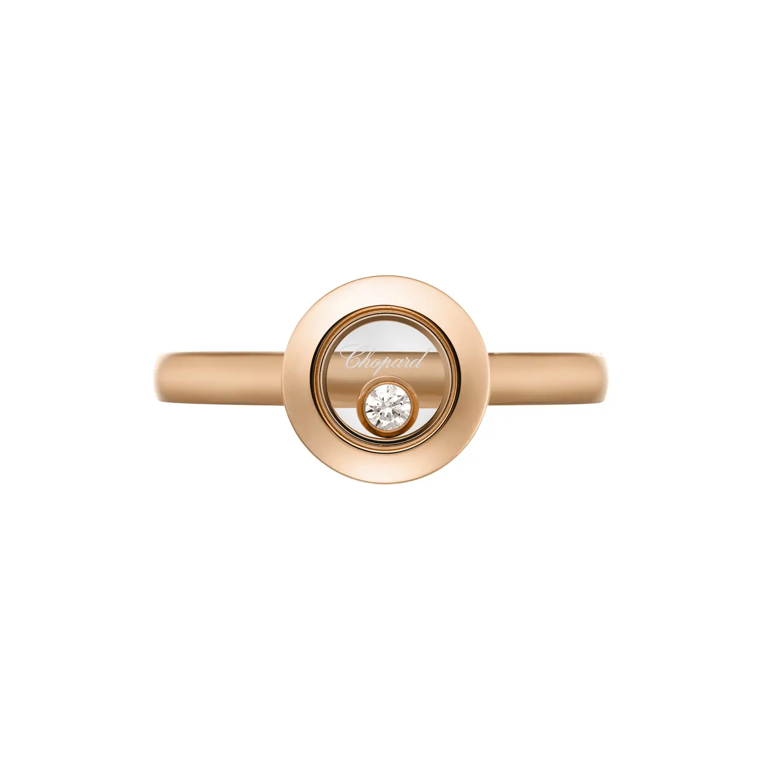 Кольцо Chopard Happy Diamonds 82A017-5116 воплощает очарование движения и света — основные мотивы этой легендарной коллекции. Изготовлено из 18-каратного розового золота, украшено свободно движущимся бриллиантом весом около 0,05 ct, который изящно вращается между двумя сапфировыми стёклами — символ радости и свободы.