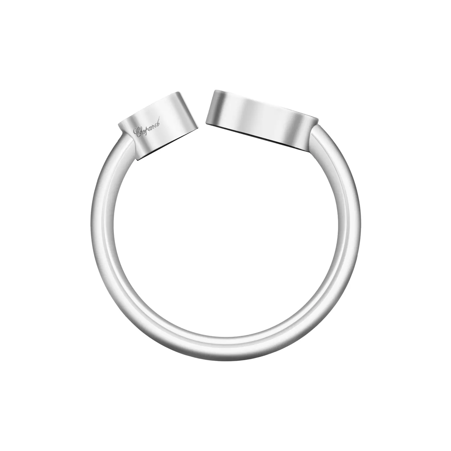 Кольцо Chopard Happy Hearts 829482-1910 воплощает гармонию любви, света и движения. Изготовлено из 18-каратного белого золота, украшено 19 бриллиантами общим весом около 0,18 ct и дополнено одним подвижным бриллиантом весом примерно 0,04 ct, свободно вращающимся между двумя сапфировыми стёклами — фирменным элементом коллекции Happy Hearts.