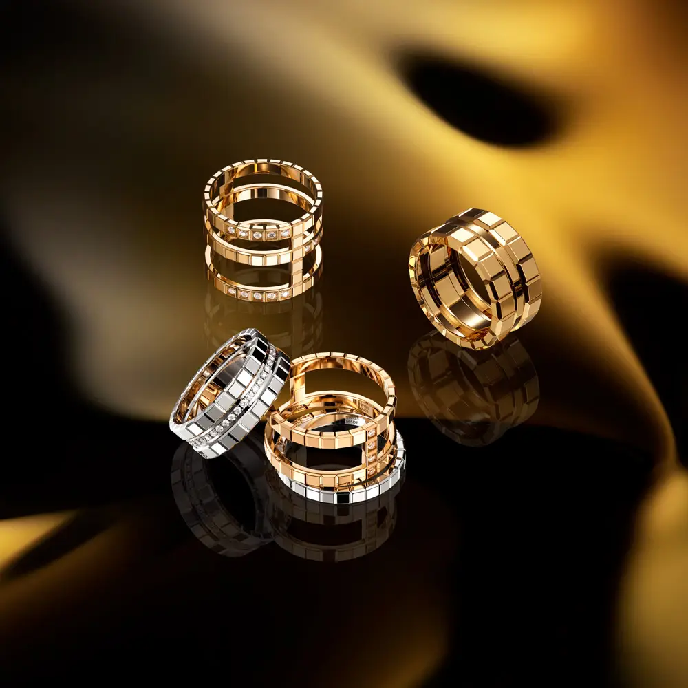 Это кольцо из культовой коллекции Ice Cube бренда Chopard выполнено из 18-каратного этического розового золота, чей тёплый оттенок подчеркивает современную и одновременно вечную элегантность дизайна. Характерный мотив «ледяных кубиков» с чёткими гранями и геометричной ритмикой придаёт украшению архитектурную чистоту и утончённость. Минималистичный стиль делает кольцо выразительным, но остаётся достаточно деликатным для повседневной носки и торжественных событий.