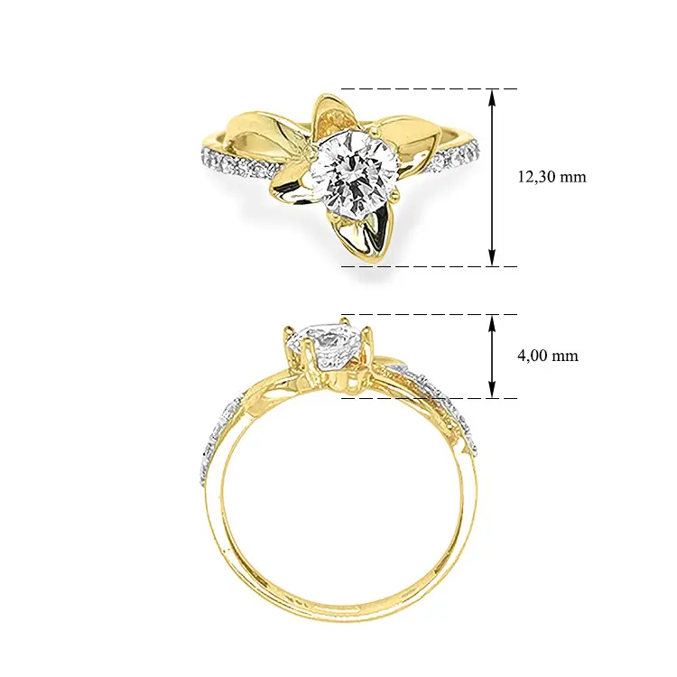 Золотое кольцо Цветок с цирконами