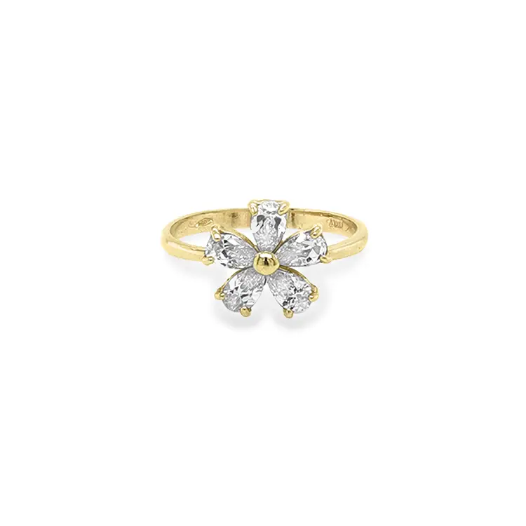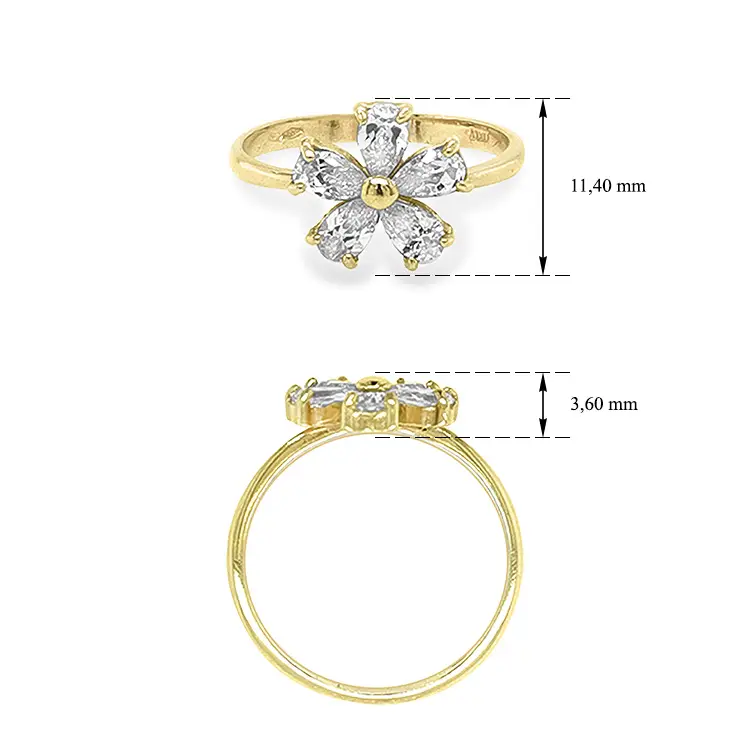 Золотое кольцо Цветок с цирконами