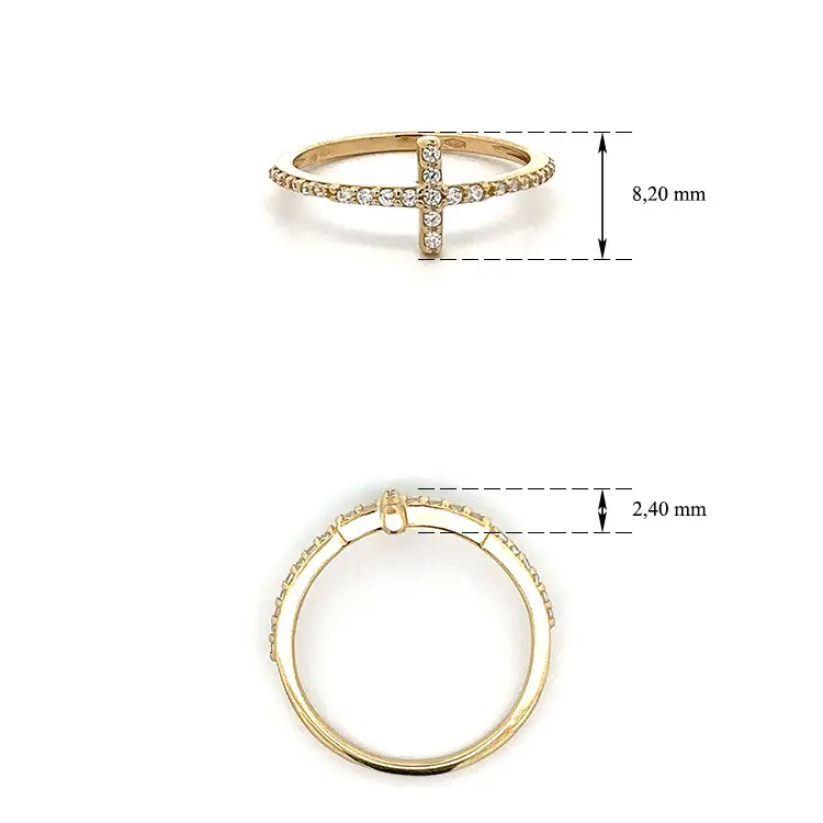 Золотое кольцо Крест с цирконами