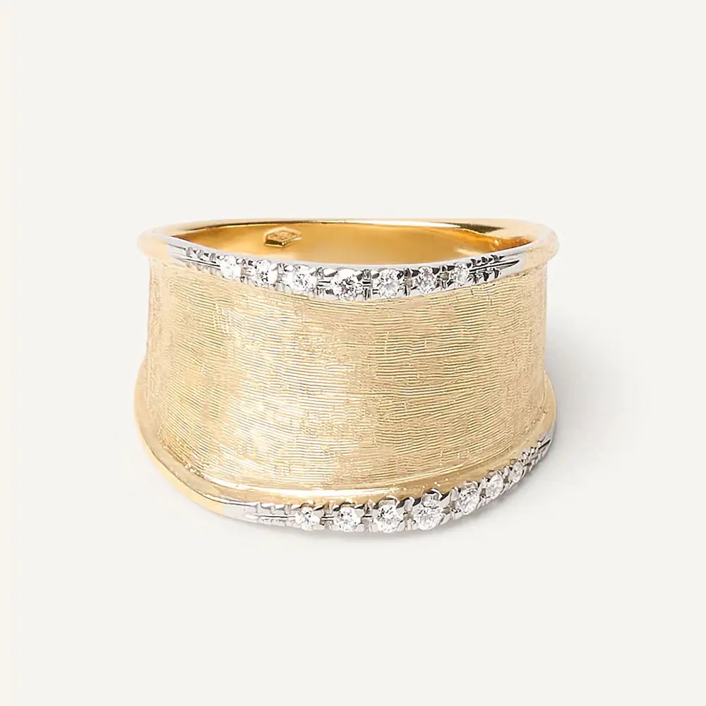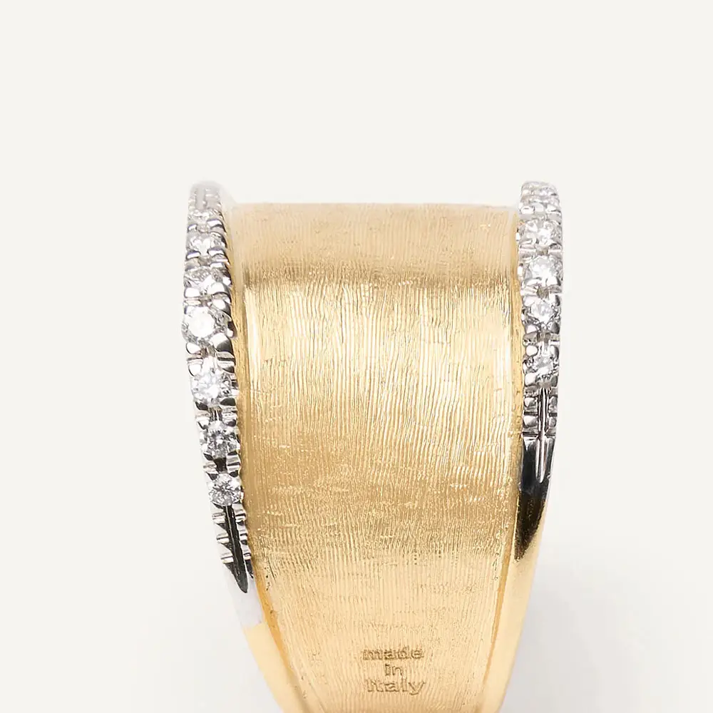 Кольцо Marco Bicego Lunaria AB550 B YW Q6 сочетает в себе тонкую грацию и выразительное сияние. Изготовлено из комбинированного золота 18 kt (750/1000) и украшено вручную выгравированными деталями в стиле коллекции Lunaria, придающими уникальную текстуру и характер.