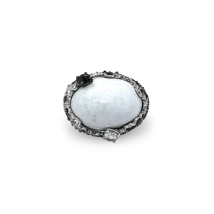 Золотое кольцо с белым агатом и бриллиантами