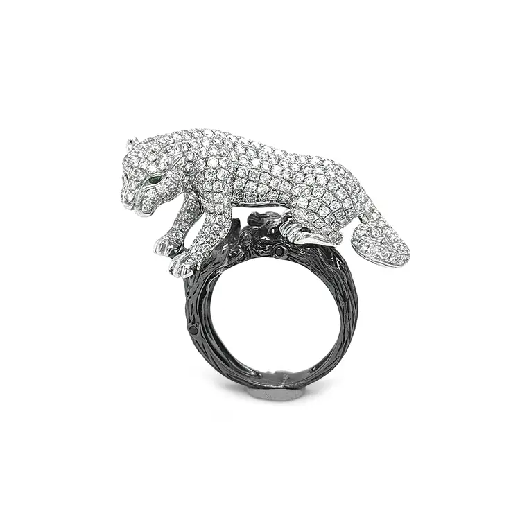 Дополняют дизайн два природных круглых изумруда по 1,50 мм, суммарным весом 0,03 ct, которые добавляют лёгкий цветовой акцент. Их зелёный оттенок создаёт элегантный контраст с белыми бриллиантами и подчёркивает индивидуальность изделия. Это кольцо предназначено для женщины, ценящей роскошь, детали и выразительный стиль.