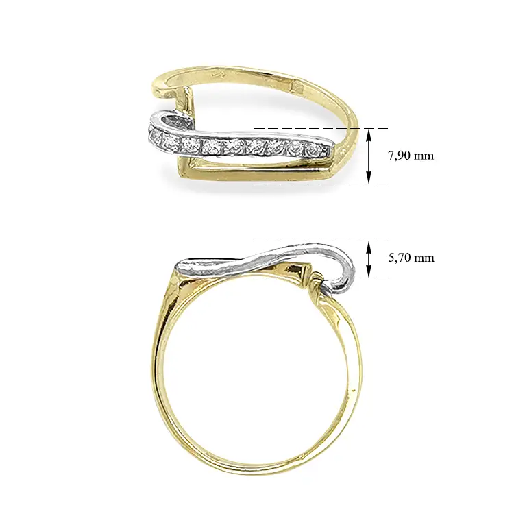 Золотое кольцо с цирконами из комбинированного золота
