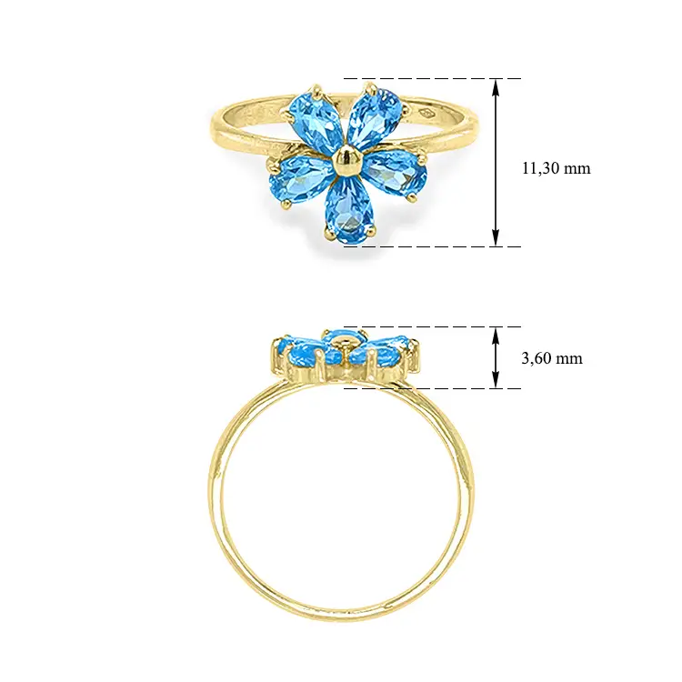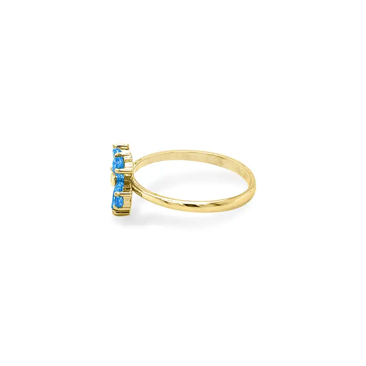 Золотое кольцо с голубыми камнями Цветок