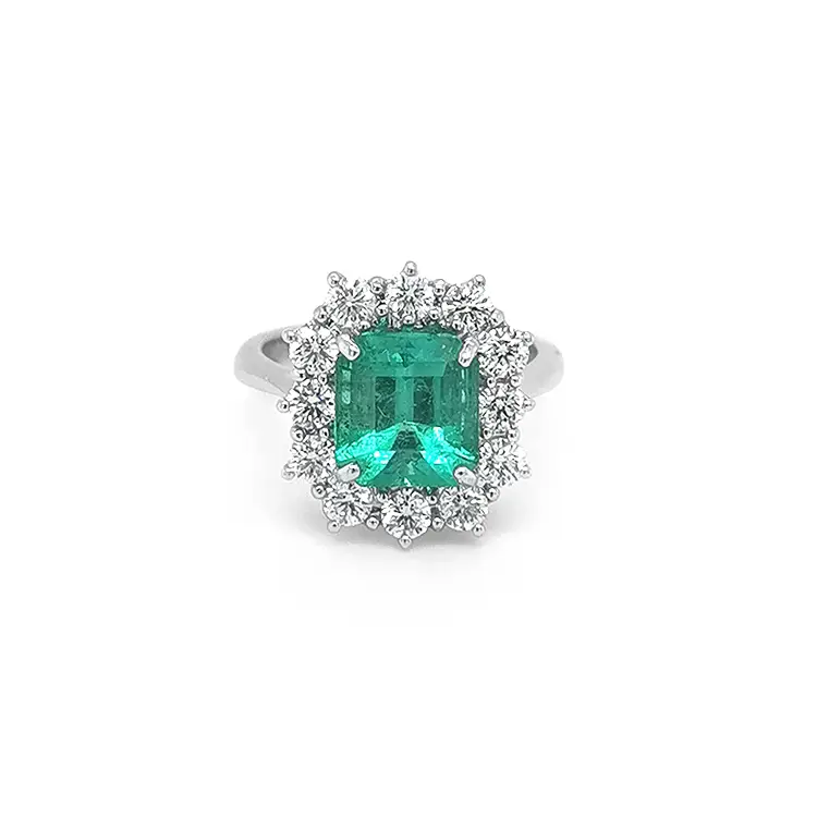 Рождество, День святого Валентина, день рождения, юбилей, помолвка. Это все поводы, по которым вы можете удивить свою жену красивым кольцом. Эта модель от бренда Beny создана для сильных, уверенных и независимых женщин, которые не боятся быть собой. Белое 18-каратное золото элегантно и красиво контрастирует с изумрудом, который занимает центральное место в кольце. Окружение изумруда усыпано бриллиантами, что придает кольцу уникальность.