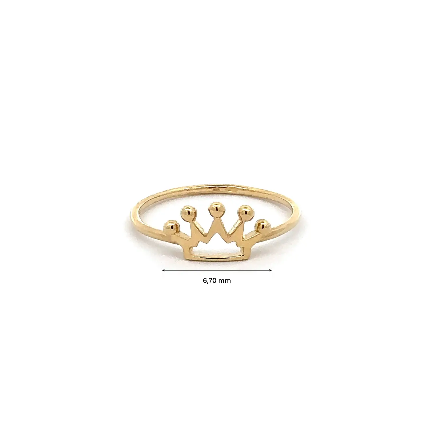 Это элегантное золотое кольцо с короной сочетает в себе игривость и утончённый стиль, привлекая внимание своей нежной, воздушной формой. Изготовленное из высококачественного желтого золота, оно выглядит лёгким и аккуратным, а открытый силуэт короны придаёт украшению символичность. Корона олицетворяет силу, уверенность и уникальность — отличный выбор для женщины, желающей подчеркнуть свою индивидуальность.