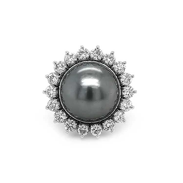 Золотое кольцо с натуральным жемчугом и бриллиантами