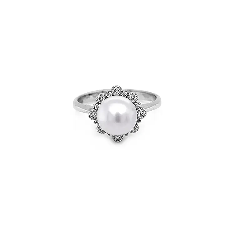 Золотое кольцо с натуральным жемчугом и бриллиантами
