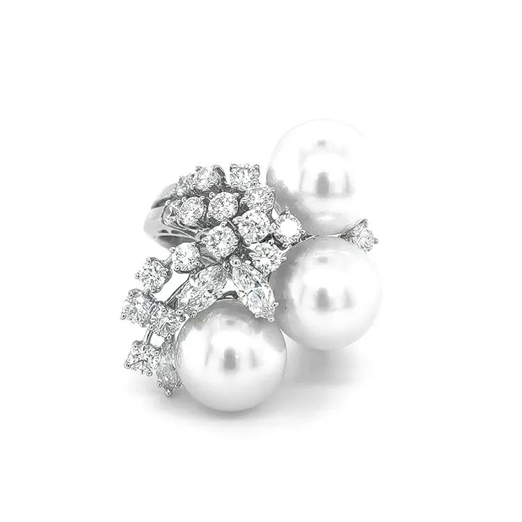 Золотое кольцо с натуральным жемчугом и бриллиантами