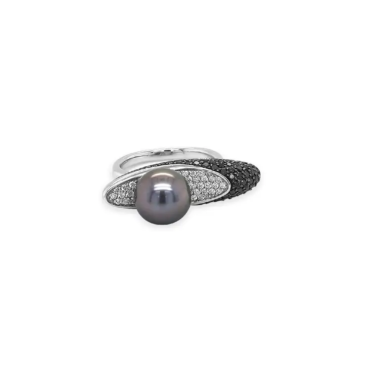 Золотое кольцо с натуральной таитянской жемчужиной и бриллиантами