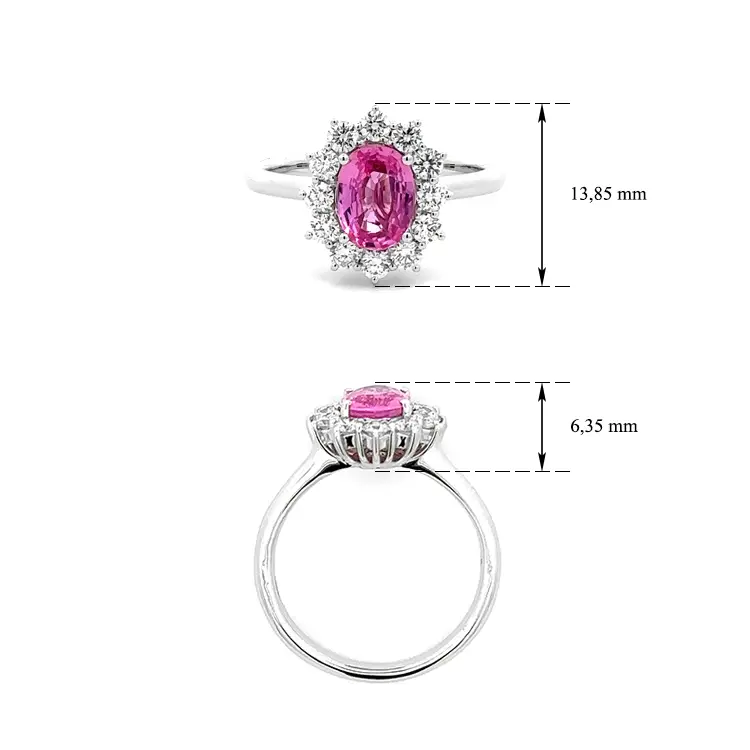 Золотое кольцо с розовым сапфиром и бриллиантами
